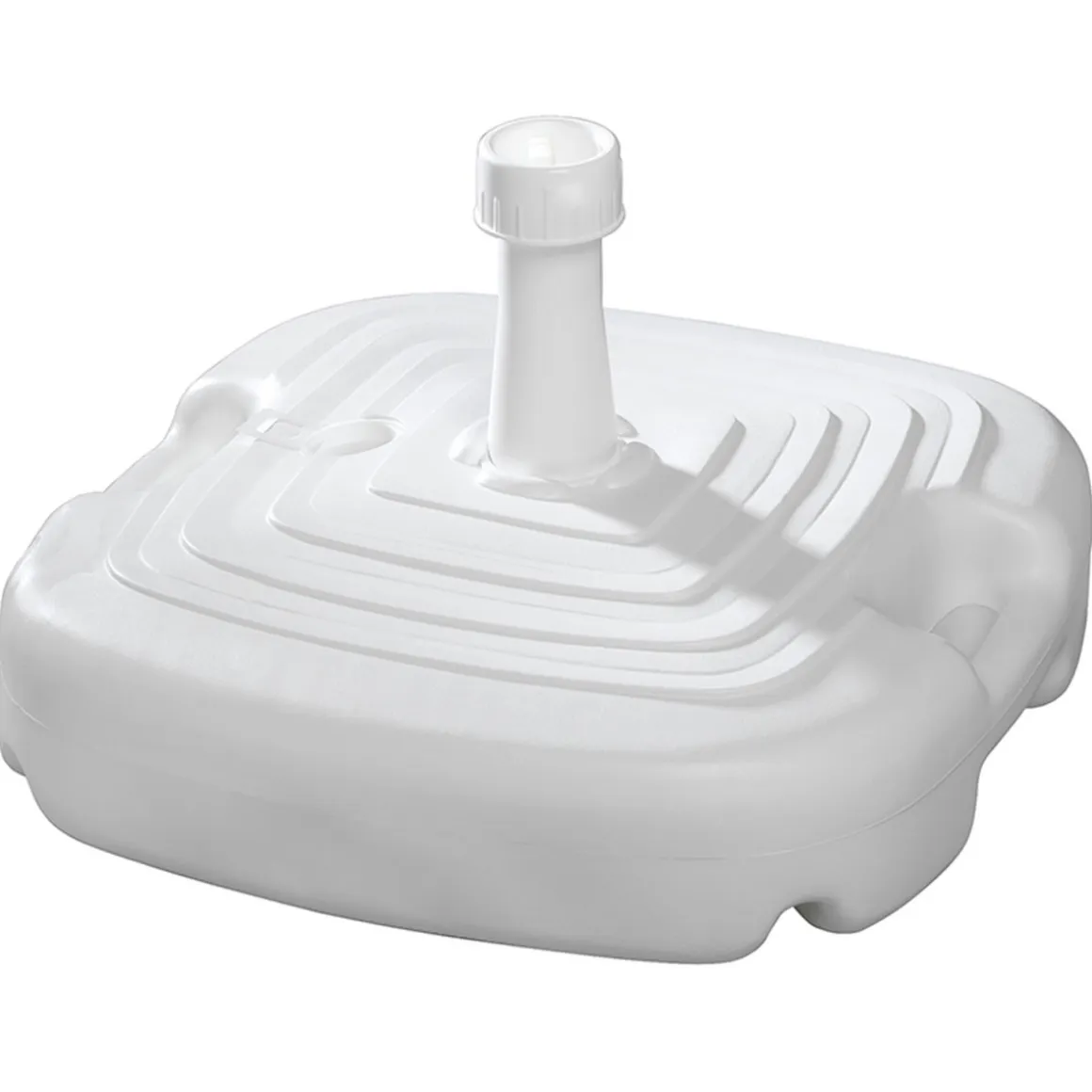 Sichern Sie Ihren Sonnenschirm mit dem Schneider Schirme PE-Schirmständer in Weiß. Der eckige Kunststoffständer ist befüllbar und für Stockdurchmesser von 25-32 mm geeignet.