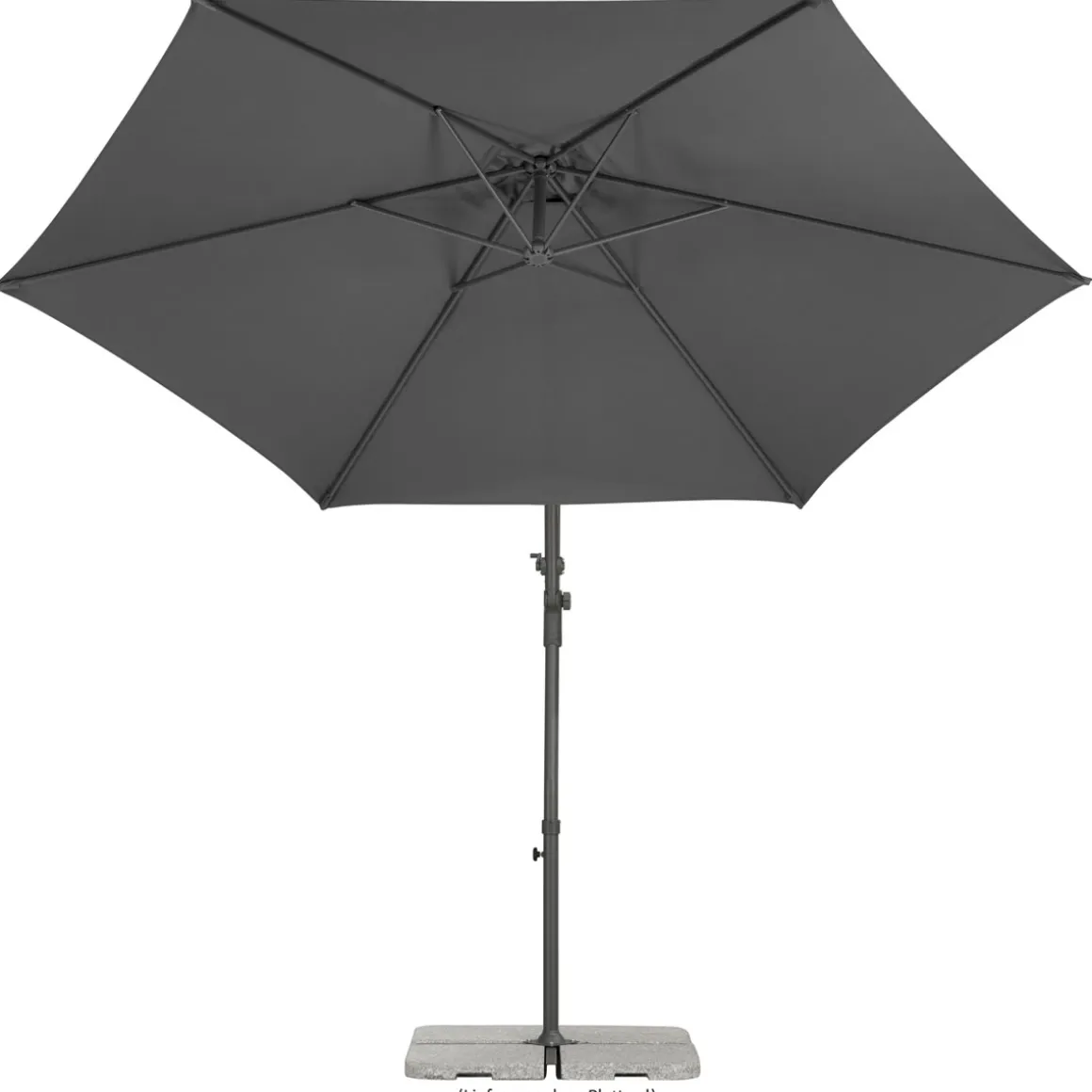Mit dem Schneider Schirme Sonnenschirm Genua holen Sie sich den perfekten Schattenspender auf Ihre Terrasse. Der Ampelschirm mit einem Durchmesser von 300 cm und einer Höhe von 255 cm bietet ausreichend Platz für Sie und Ihre Gäste. Das anthrazitfarbene Design passt zu jeder Einrichtung und schafft eine angenehme Atmosphäre.