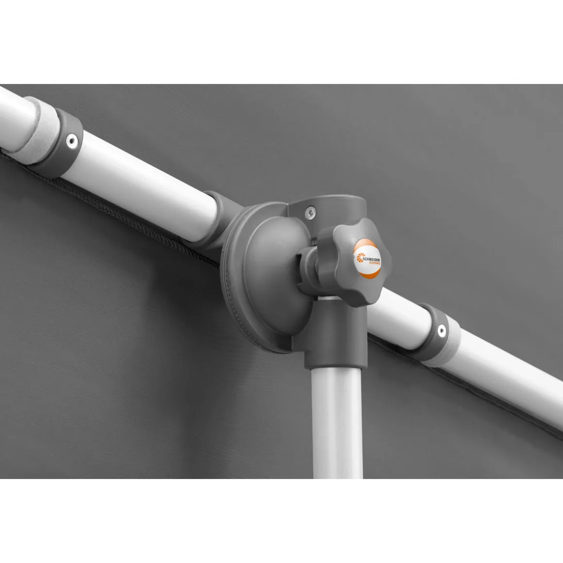 Mit dem Schneider Schirme Sonnenschirm Novara können Sie unbesorgt die warme Jahreszeit genießen. Die hochwertige Verarbeitung aus Aluminium-Stahl-Gestell und wasserabweisender Polyester-Bespannung sorgt für eine lange Lebensdauer des Produkts. Zudem ist der Marktschirm höhenverstellbar und kann in alle Richtungen gedreht werden, um Ihnen optimalen Komfort zu bieten.