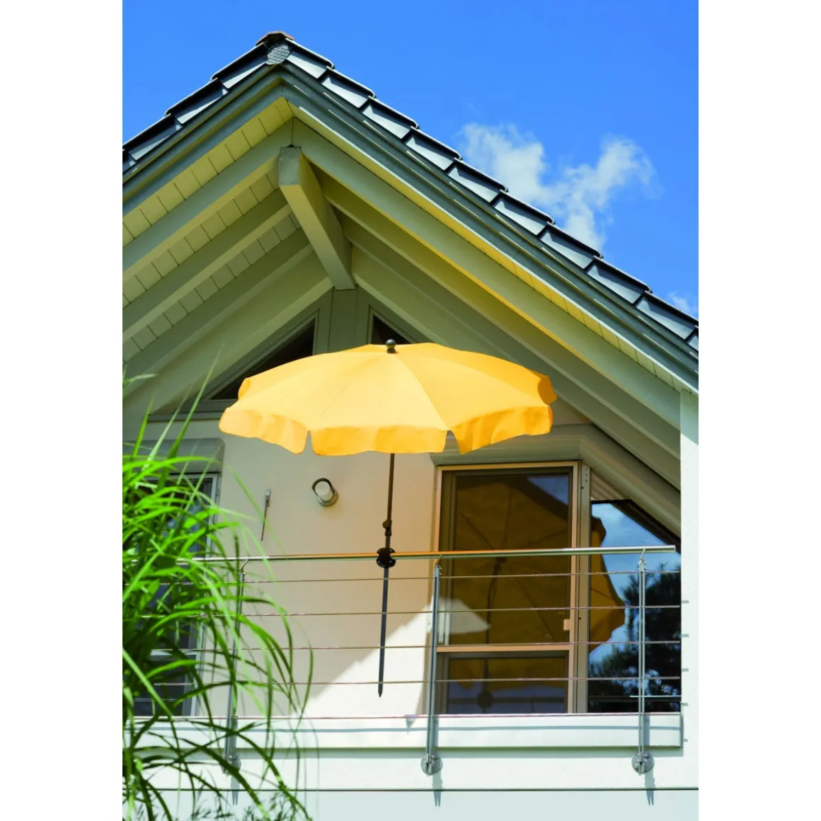 Mit dem Schneider Schirme Sonnenschirmhalter Foxi können Sie Ihren Sonnenschirm sicher und einfach an Ihrem Balkongeländer befestigen. Die ästhetische Form ohne Ecken und scharfe Kanten sorgt für eine sichere Nutzung, auch für Kinder.