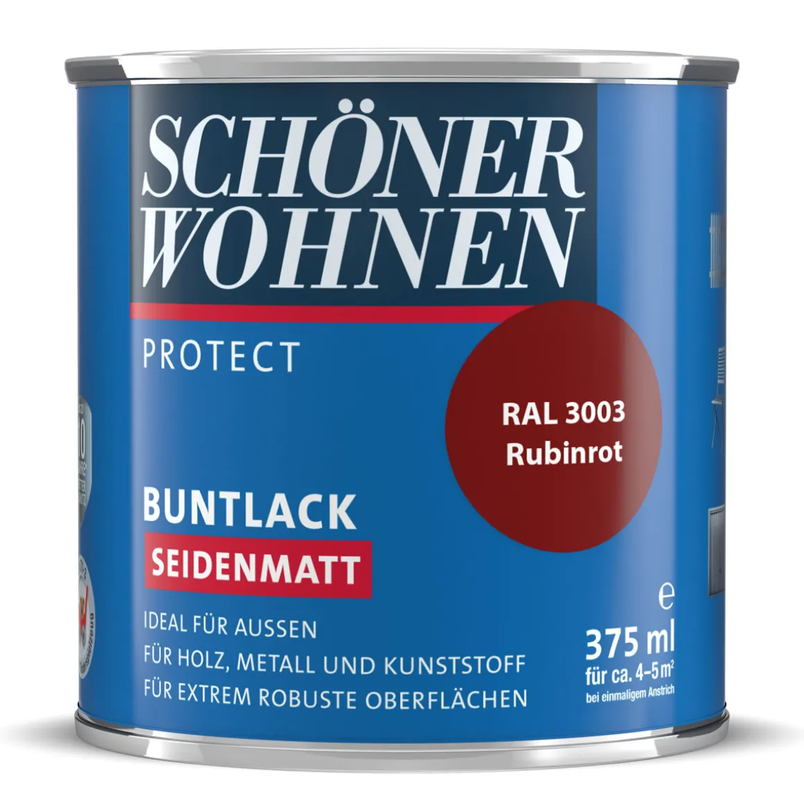 Schöner Wohnen Farbe Buntlack Protect rubinrot seidenmatt – Strapazierfähiger Alkydharzlack für den Innen- und Außenbereich