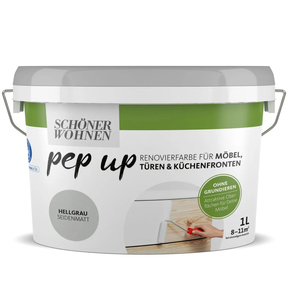 Schöner Wohnen Farbe pep up hellgrau für Möbel, Türen und Küchenfronten – Ein seidenmattes Highlight in Ihrem Zuhause