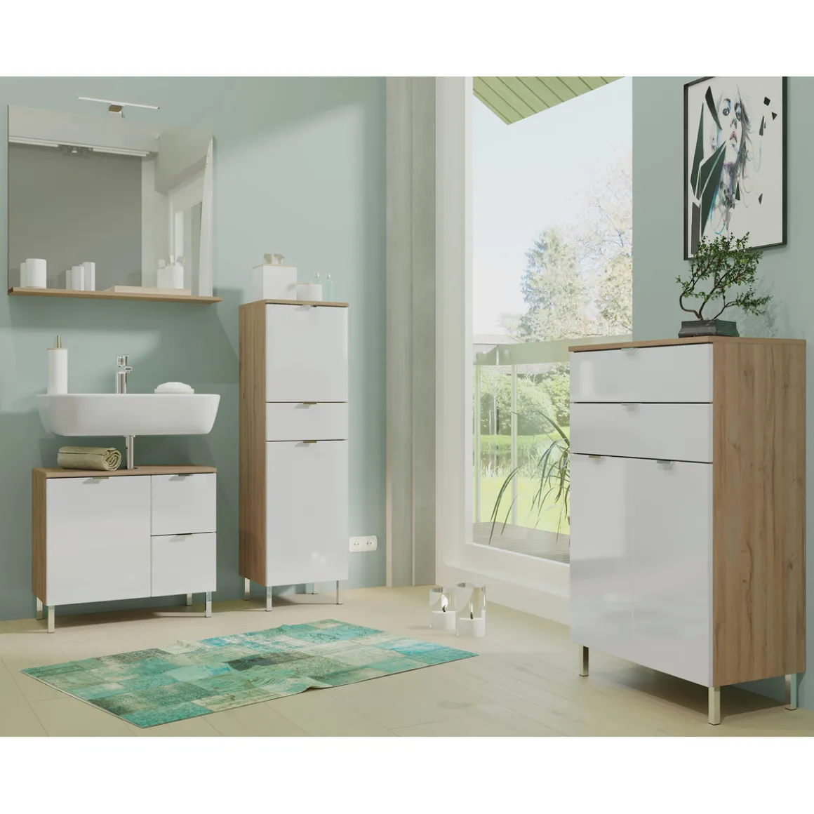 Der Midischrank Maureen ist mehr als nur ein Möbelstück – er ist eine Bereicherung für Ihr Zuhause! Mit seinem modernen Design aus Grandson-Eiche-Nachbildung und weißen Hochglanzfronten setzt er stilvolle Akzente in jedem Raum. Gleichzeitig überzeugt er durch seine praktische Ausstattung wie Türdämpfung, Soft-Close-Schubladen sowie verstellbare Einlegeböden. Egal ob Sie zusätzlichen Stauraum benötigen oder einfach frischen Wind in Ihre Einrichtung bringen möchten: Dieser elegante Allrounder wird all Ihre Erwartungen übertreffen! Zögern Sie nicht länger – klicken Sie jetzt auf ‚In den Warenkorb‘ und machen Sie Ihr Zuhause noch schöner!