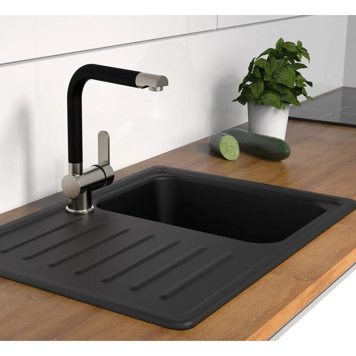 - Schwenkbarer Auslauf und Geschirrbrause für mehr Flexibilität beim Spülen