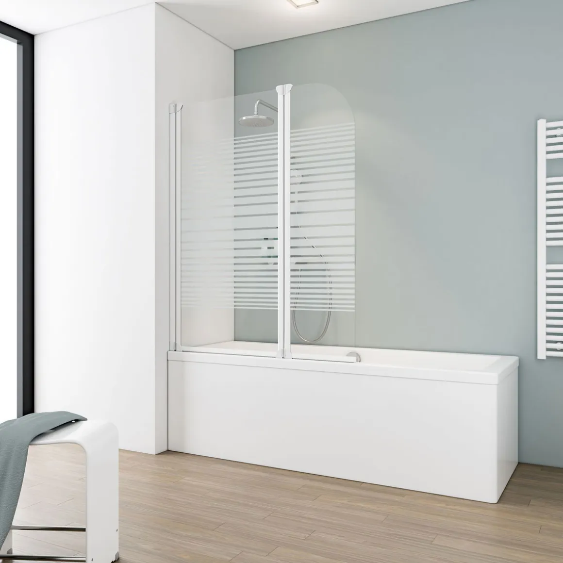 Mit der Schulte Badewannenfaltwand Komfort 3-teilig grau wird das Duschen zum Erlebnis. Die hochwertigen Aluminiumprofile verleihen Stabilität und das halbsatinierte Glasdesign sorgt für eine angenehme Atmosphäre im Badezimmer.