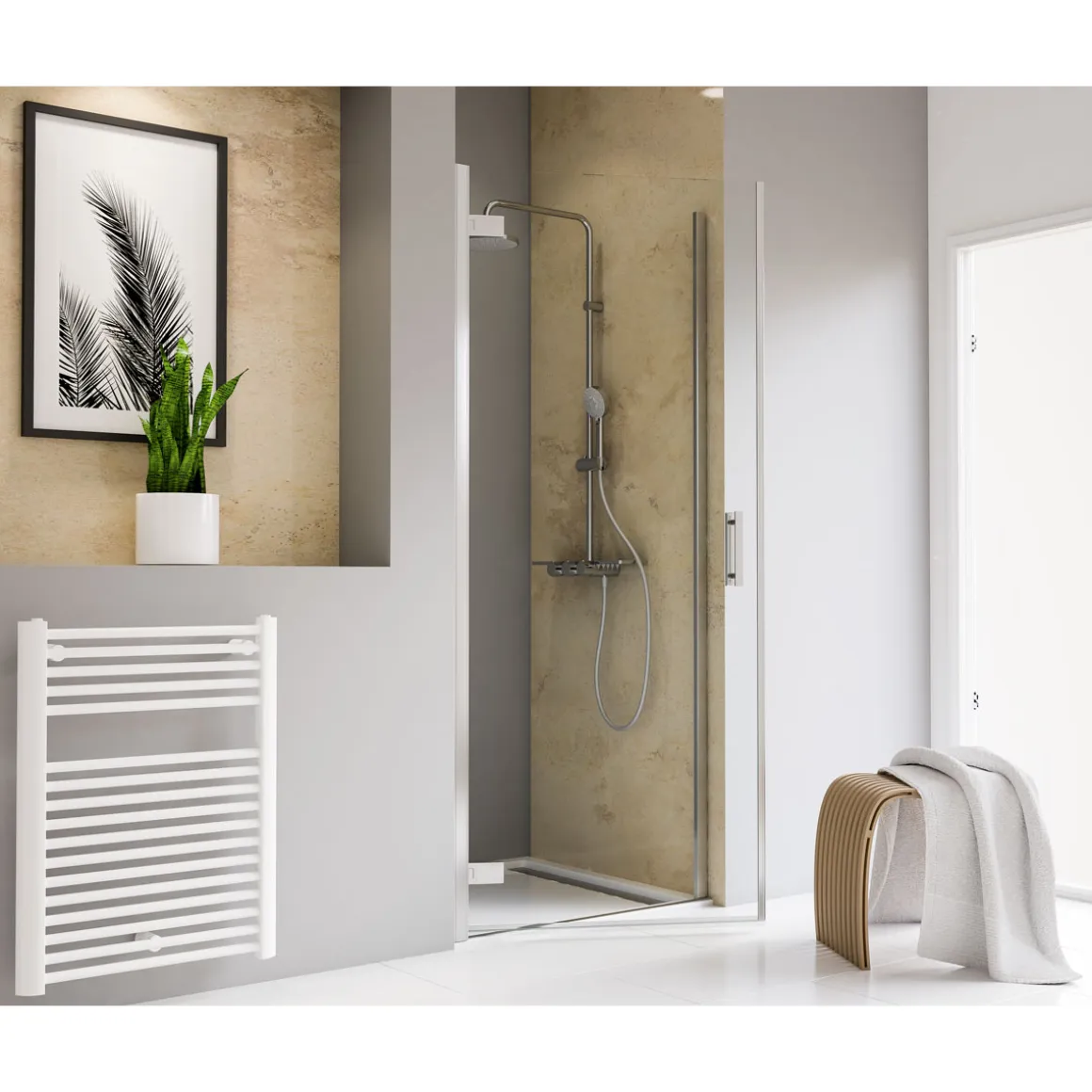 Die pendelbare Drehtür der Serie Toura eignet sich optimal für den Einbau in einer Nische sowie für kleine Bäder: Die 2000 mm hohe und 8 mm starke Drehtür aus Sicherheitsglas (ESG) kann aufgrund der praktischen Pendelscharniere flexibel nach innen sowie außen geöffnet werden. Dies ermöglicht eine hohe Platzersparnis zu jedem Zeitpunkt. Des Weiteren erzeugen die ebenso hochwertigen wie eleganten Wandanschlussprofile in Verbindung mit dem formschönen Griff ein exklusives Design.Zudem sind alle Glaselemente der Serie Toura werksseitig mit der fixil-Glasbeschichtung versehen, sodass die Reinigung und Pflege der Produkte langfristig einfach und schnell zu erledigen ist.