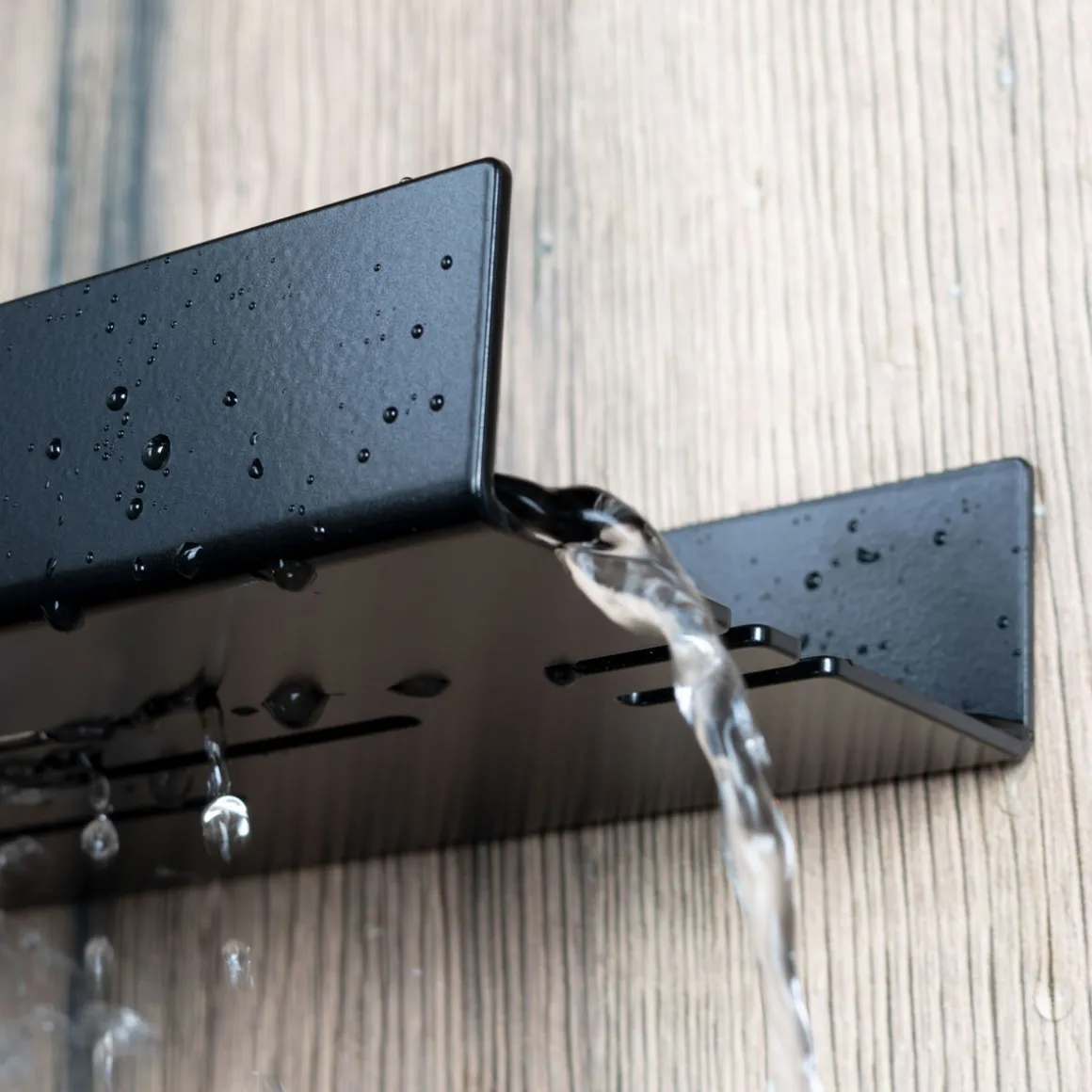 - Integrierte Aussparungen für Wasserablauf und Aufhängen weiterer Duschartikel