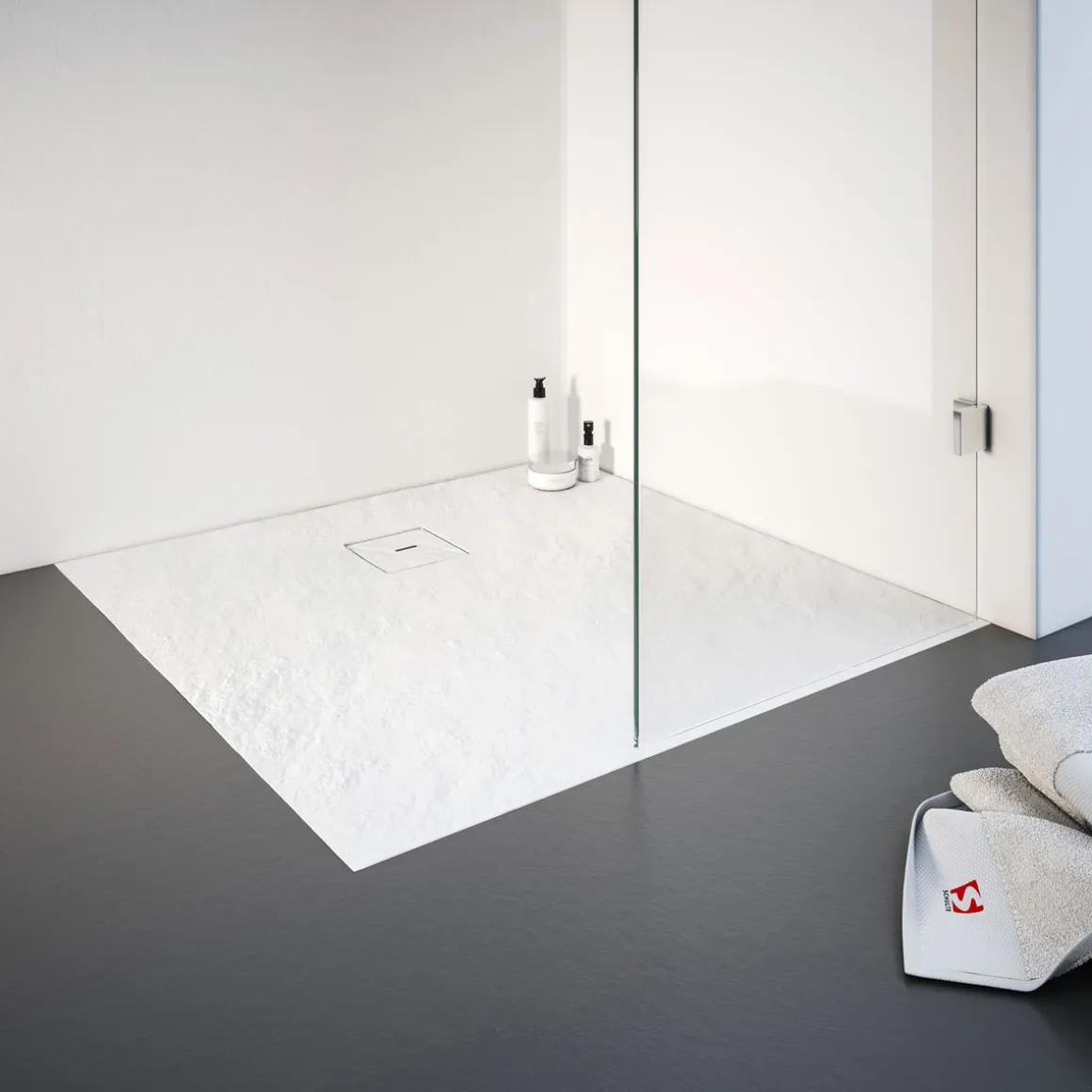 - Hautfreundliche Oberfläche aus farbigen Naturstein für ein angenehmes Duscherlebnis.