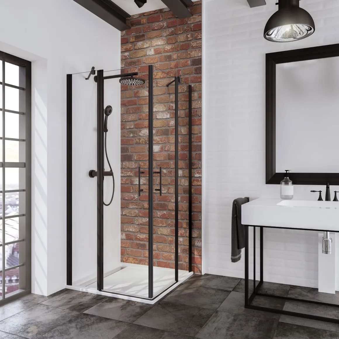 Schulte Eckeinstieg mit Drehtür BlackStyle mattschwarz BxH 90 x 192 cm