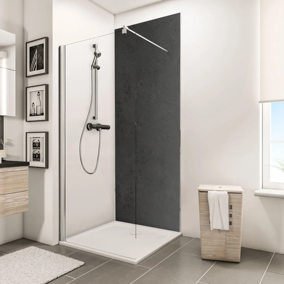Schulte ExpressPlus Duschrueckwand DecoDesign Dekor Stein Anthrazit 2100 x 1000