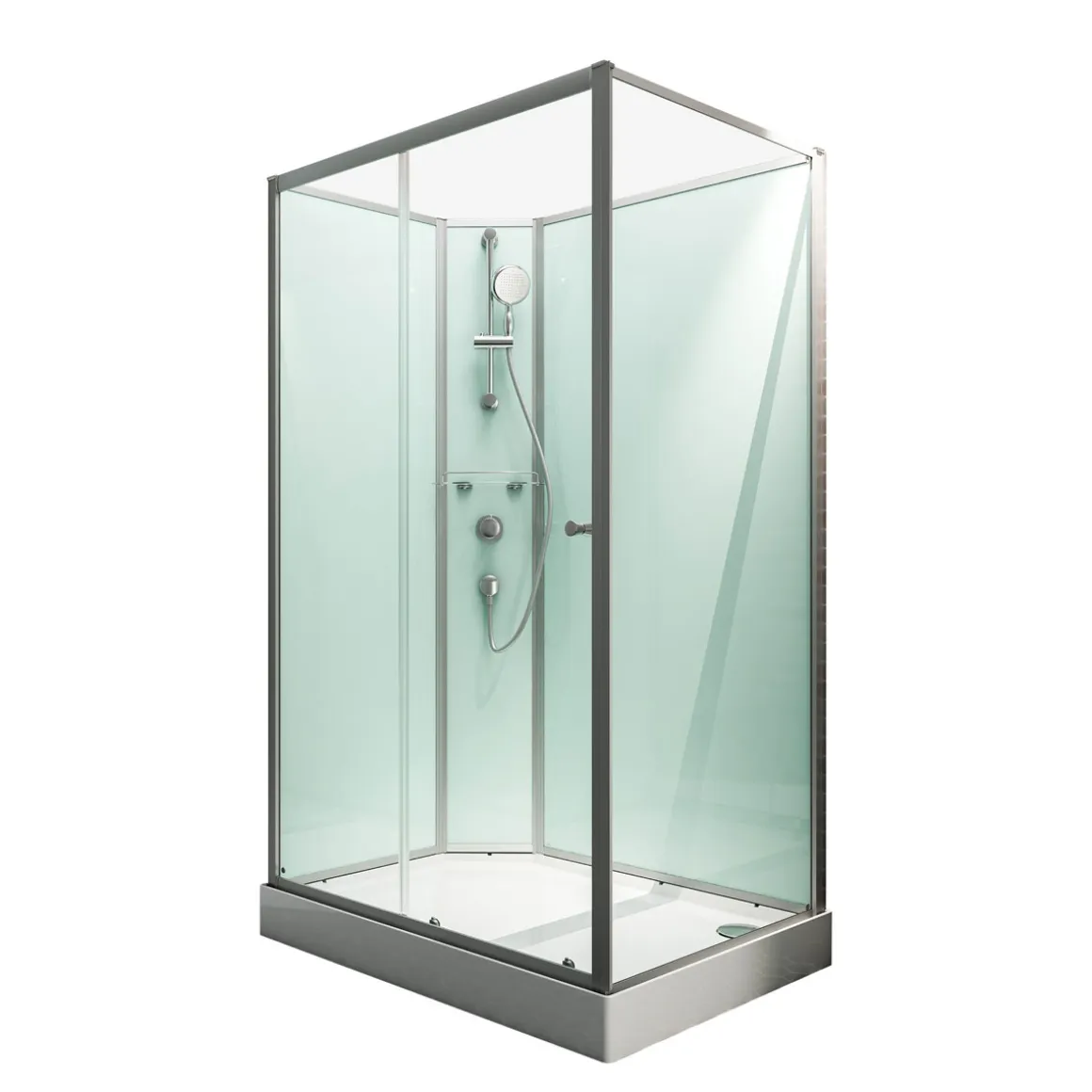 Die Wellnesskabine Ibiza überzeugt mit einer weiten Einstiegsbreite, die durch eine praktische, leichtgängige Gleittür ermöglicht wird. Außerdem ist die Duschkabine ein echter Hingucker: Komplett aus Echtglas (ESG) hergestellt, strahlen die Rückwände in der Farbe light grün durch die klaren, farblosen Schiebetüren und Seitenwände. Darüber hinaus gestaltet sich die Montage der Wellnesskabine Ibizia völlig unkompliziert: Alle Bestandteile einer funktionsfähigen Duschkabine sind im Lieferumfang enthalten und können leicht zusammengefügt werden. Dies ermöglicht einen schnellen und unkomplizierten Aufbau.