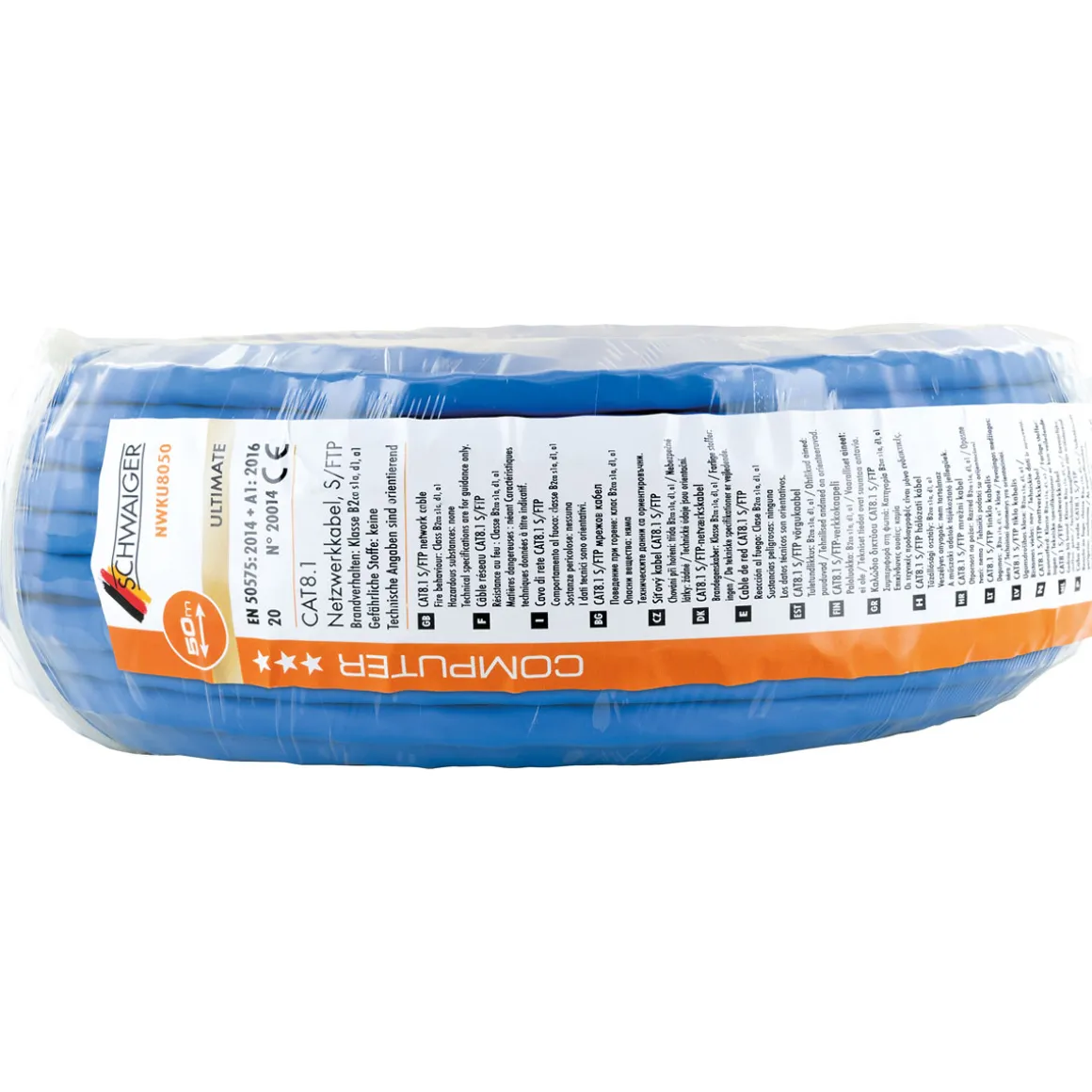 Schwaiger Netzwerkkabel CAT8.1 50 m blau – Ihre Verbindung in Bestform
