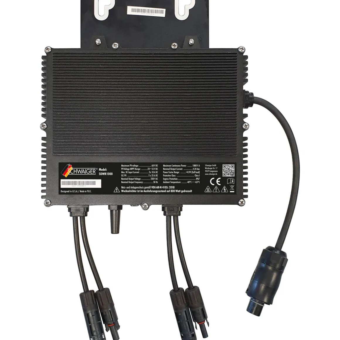 - Spitzenleistung von 1000 W, gedrosselt auf 800 W (In DE derzeit 800 W Einspeisung erlaubt)