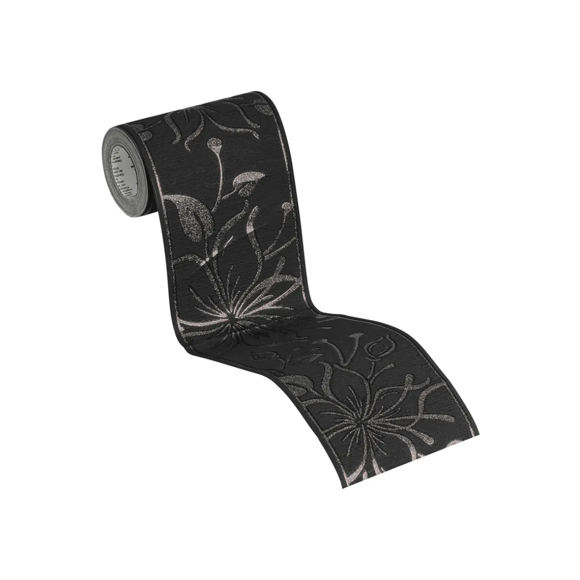 Mit der selbstklebenden Borte in Schwarz-Grau und dem floralen Glitzerdekor setzen Sie stilvolle Akzente in Ihrem Zuhause. Dank ihrer hochwertigen Beschaffenheit ist sie nicht nur rissüberbrückend sondern auch gut lichtbeständig und hoch waschbeständig. Die einfache Verarbeitung ohne zusätzlichen Kleister macht das Anbringen zum Kinderspiel.