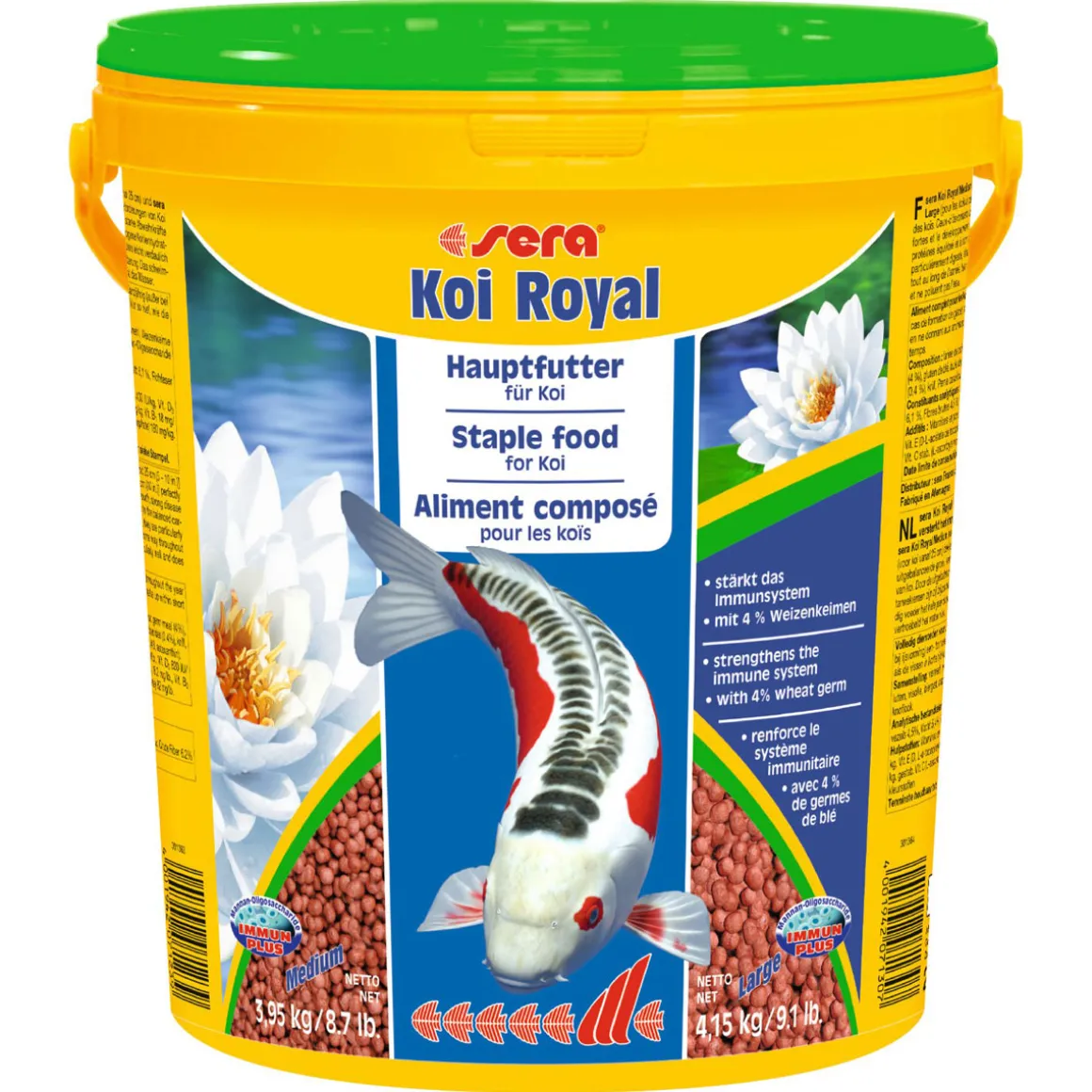 sera Koi Royal ist ein ausgewogenes Hauptfutter und perfekt auf die Ernährungsanforderungen von Koi und anderen Teichfischen abgestimmt. Es fördert gesundes Wachstum und ist hoch verdaulich. Der ausgewogene Gehalt an natürlichen Mineralien, Spurenelementen und Vitaminen stärkt die Abwehrkräfte und sorgt für vitale Fische. Entsprechend den Entwicklungsstufen der Koi ist das Futter in den drei Korngrößen Mini (2 mm), Medium (4 mm) und Large (6 mm) erhältlich. Alleinfuttermittel für Koi.