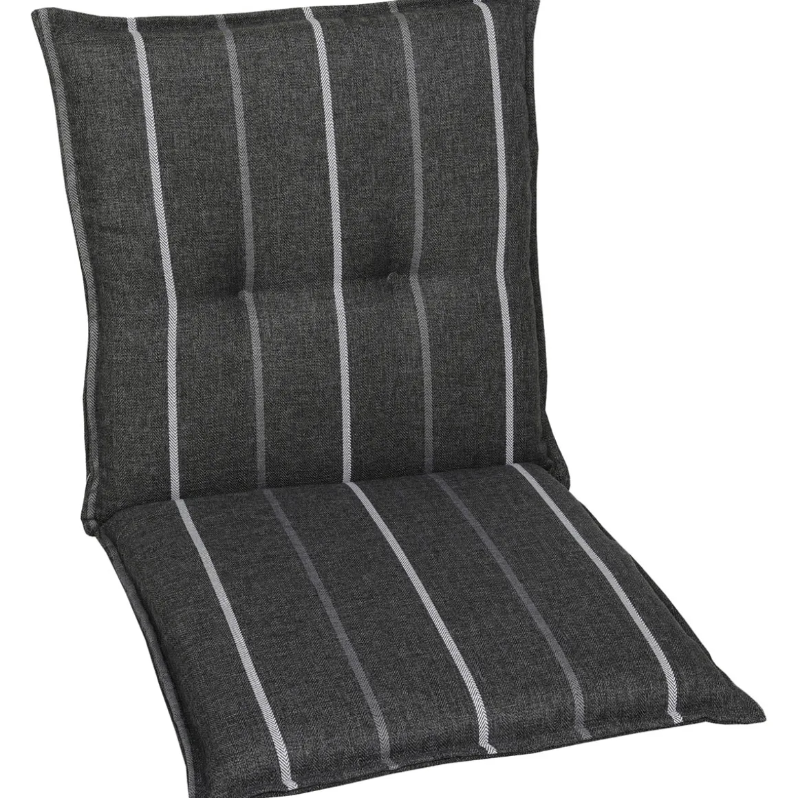Mit der Sesselauflage Dessin wird Ihr Lieblingssessel zum gemütlichen Rückzugsort. Die Wendeauflage in grau mit Stehsaum und abnehmbarem Kopfpolster ist nicht nur praktisch, sondern auch ein optisches Highlight. Das gestreifte Muster in verschiedenen Grautönen verleiht Ihrem Sessel eine moderne Note.