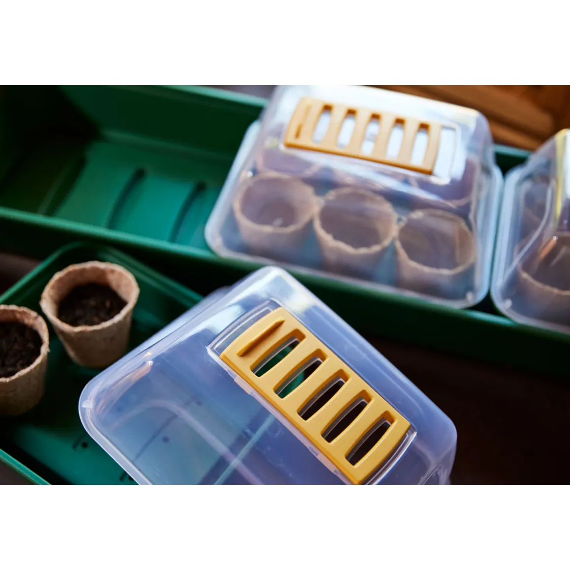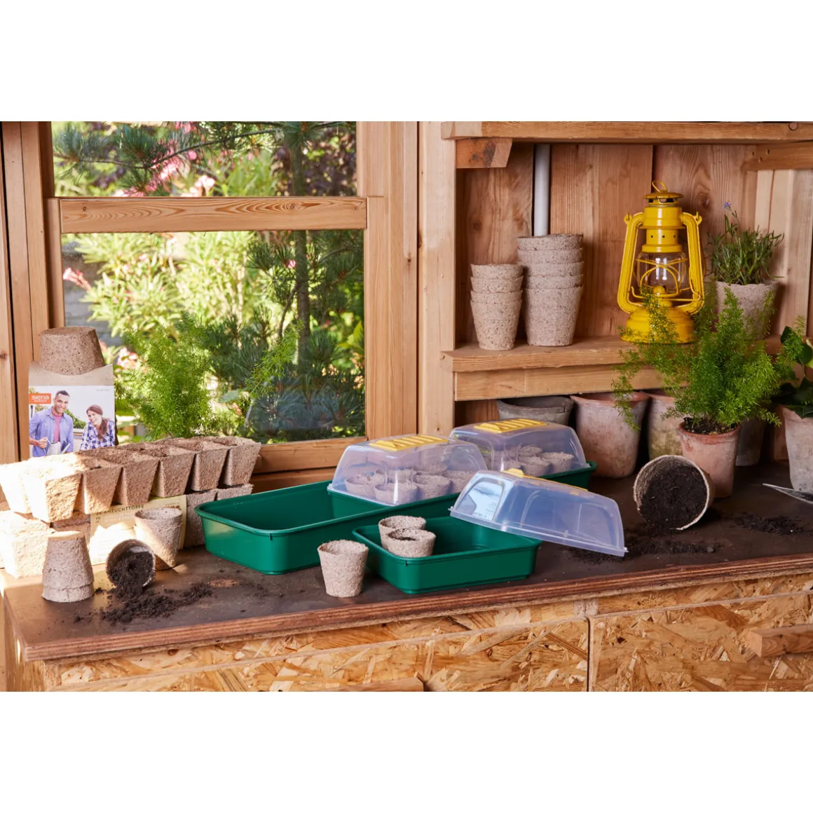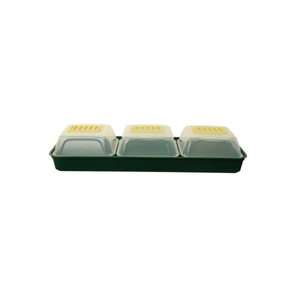 - 3 Mini-Zimmergewächshäuser unterteilt mit separatem Deckel und Schale jeweils mit Bodenlöchern