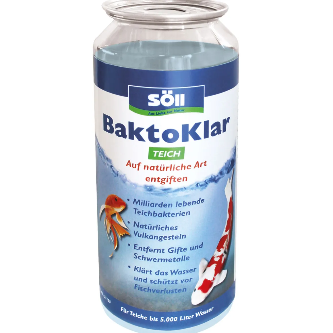 Mit Söll BaktoKlar erhalten Sie ein hochwirksames Pflegemittel für Ihren Gartenteich. Das Grundpflegemittel entfernt Schad- und Giftstoffe, klärt das Wasser und schützt vor Fischverlusten. Dank der enthaltenen lebenden Mikroorganismen wird Ihr Teich auf natürliche Art entgiftet.