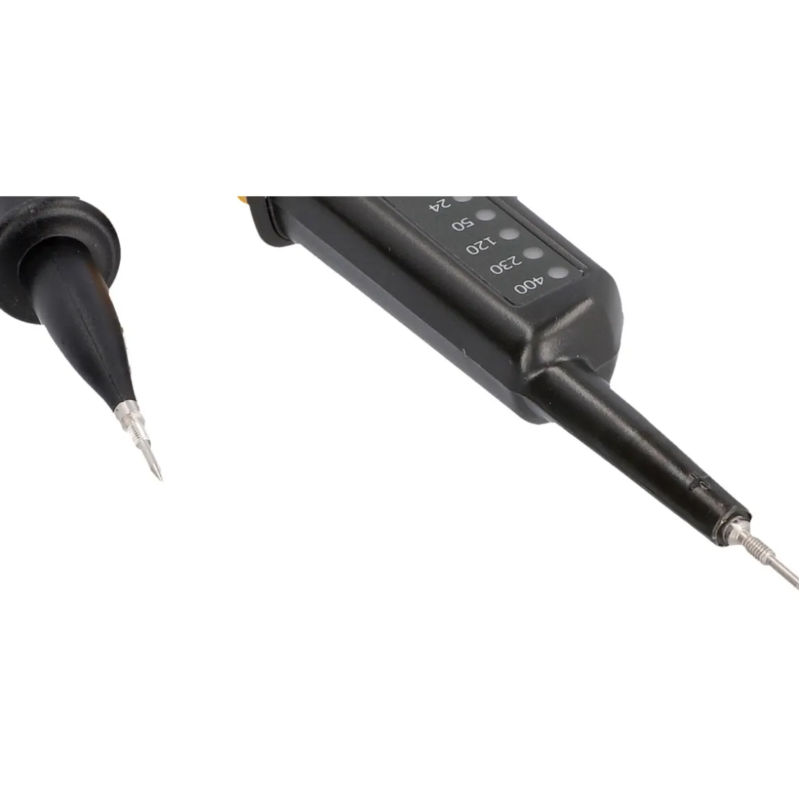 Spannungsprüfer für den Messbereich 6-400 V, mit LED-Anzeige, IP64-spritzwassergeschützt.