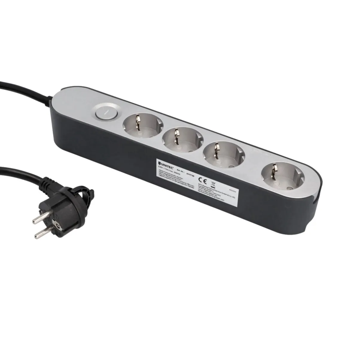 Zuleitung 1,8 m, 95 % recyceltes Rohmaterial, 4 Anschlüsse, mit Flachstecker, mit Ein- und Ausschalter.