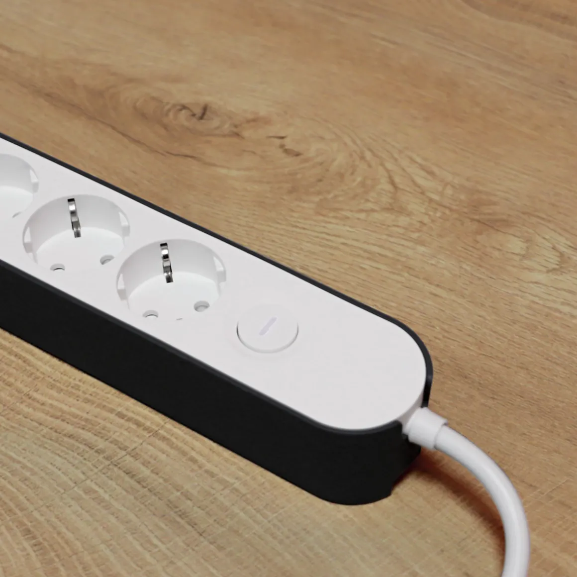 Zuleitung 1,8 m, 95 % recyceltes Rohmaterial, 4 Anschlüsse, mit Flachstecker, mit Ein- und Ausschalter.