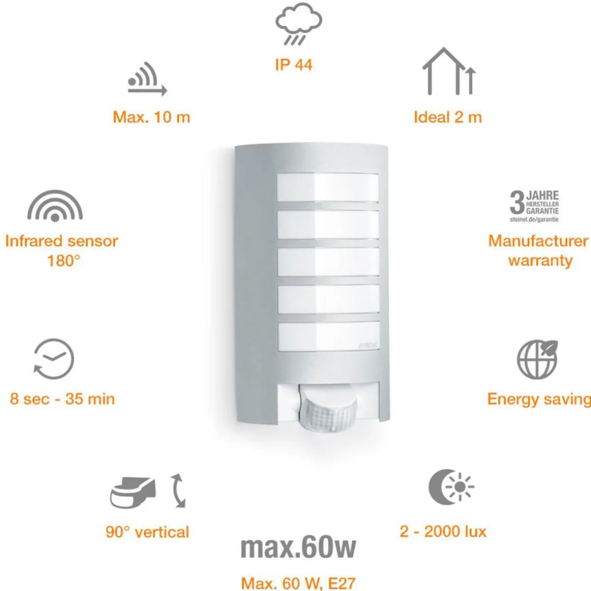 Steinel Außenleuchte L 12 S mit Bewegungsmelder Silber