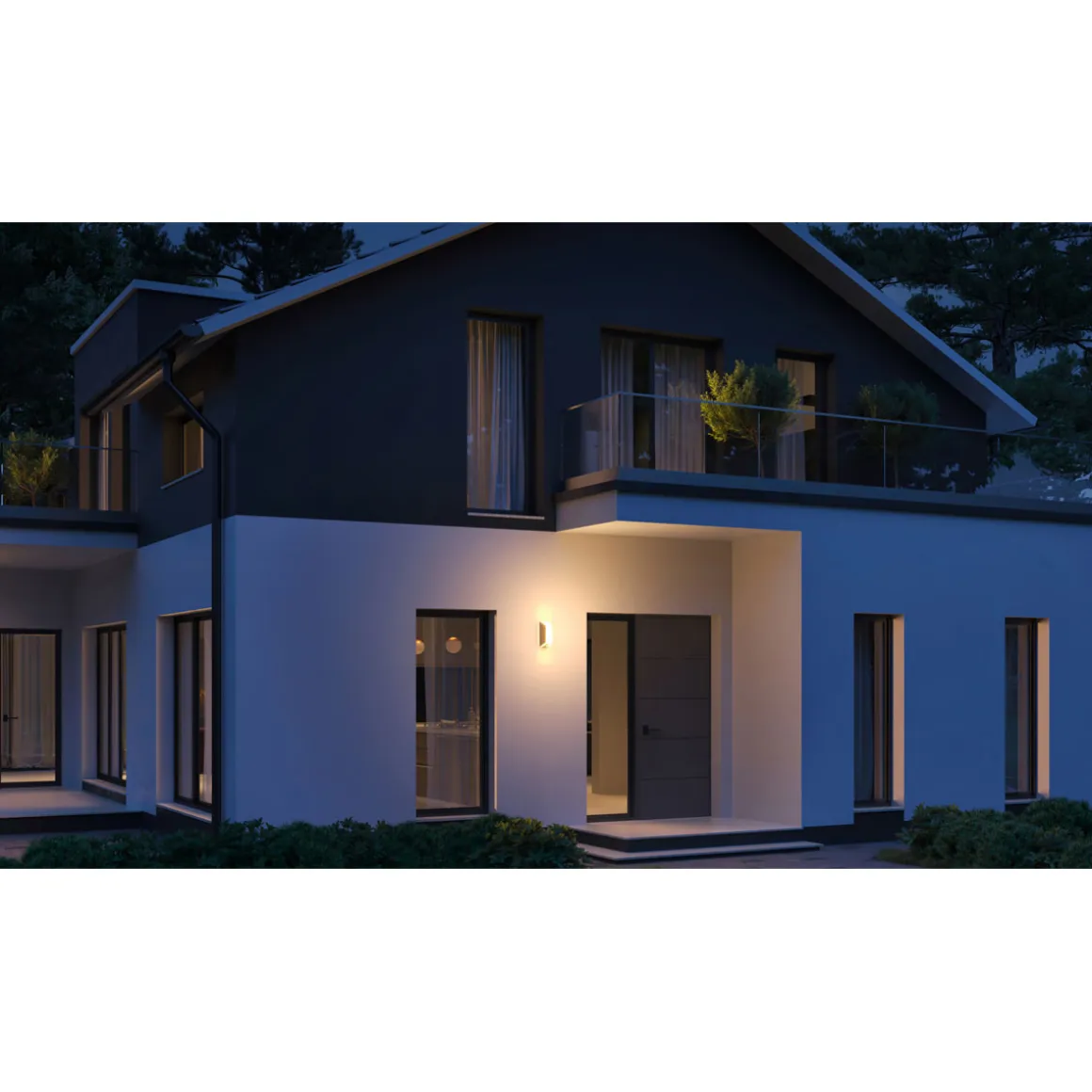 - Außenleuchte mit Bewegungsmelder und angenehmem Ambientelicht an der Hauswand