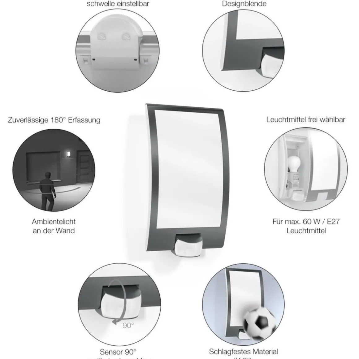 - – Lichtfarbe: kaltweiß, neutralweiß, warmweiß (je nach Leuchtmittel)