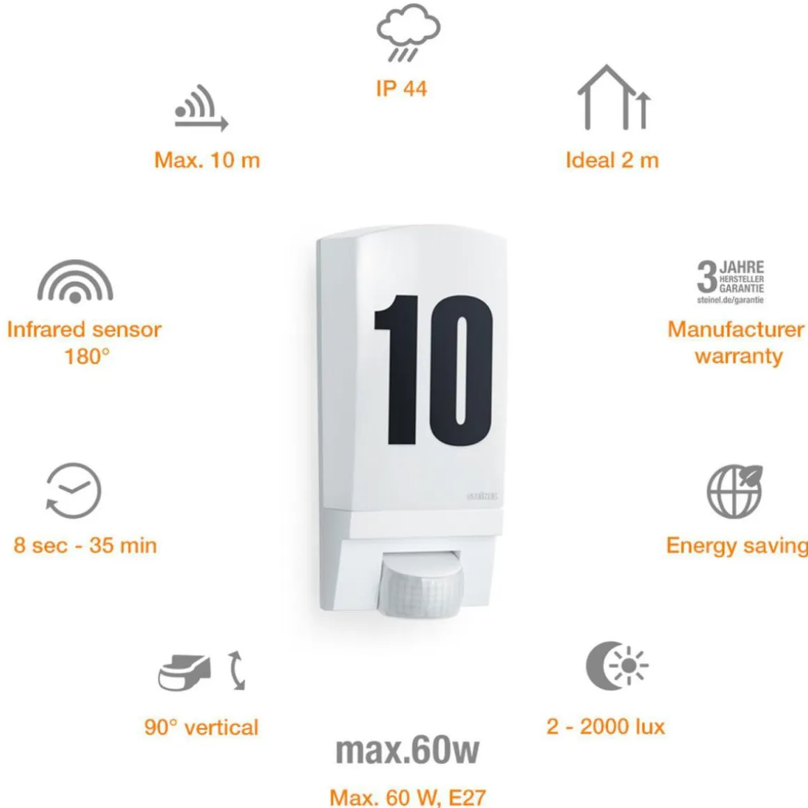 Steinel Sensoraußenleuchte L 1 S weiß mit Hausnummer