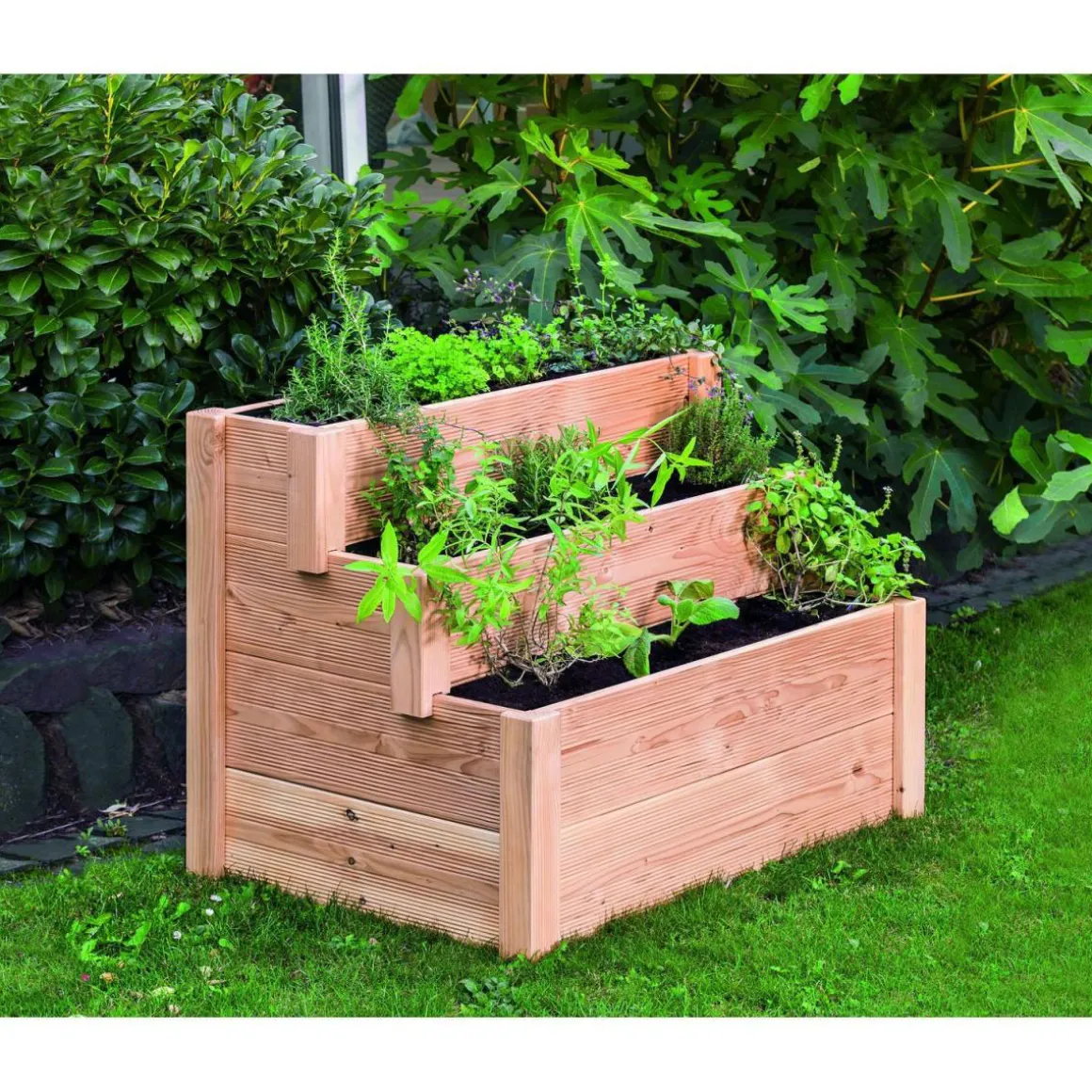 Mit dem Stufenhochbeet Typ 538 aus Douglasienholz können Sie Ihre grüne Oase im eigenen Garten gestalten. Die Wandsärke von 20 mm sorgt dabei nicht nur für Langlebigkeit, sondern auch für eine hohe Standfestigkeit. Dank des inkludierten Pflanzvlieses sowie des Montagematerials lässt sich das Hochbeet schnell und einfach aufbauen. Bestellen Sie jetzt Ihr eigenes Exemplar und erleben Sie die Freude am Gärtnern!