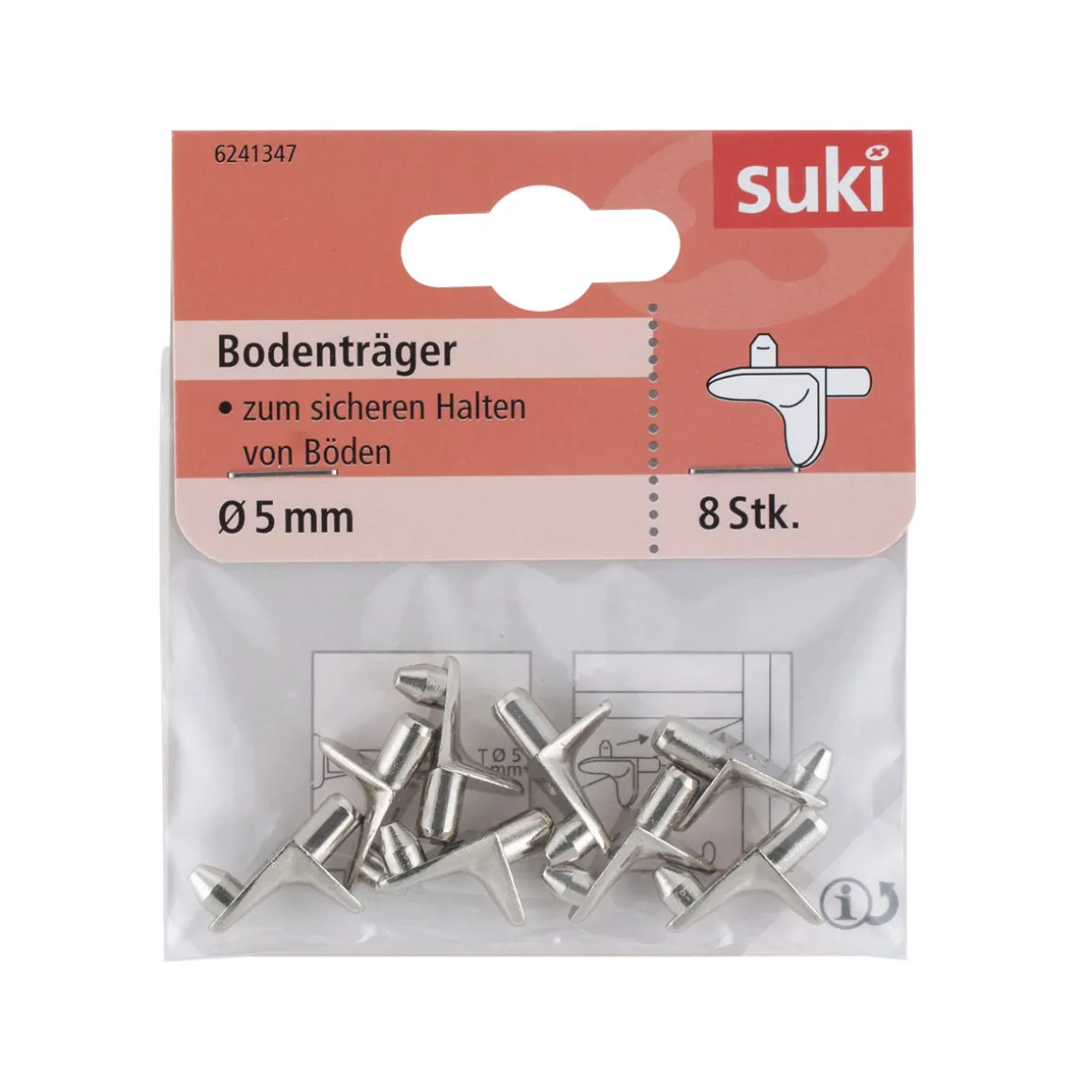 Die Suki Suki Bodenträger aus Stahl mit einem Durchmesser von 0,5 x 0,8 cm und einer vernickelten Oberfläche bieten eine stabile Befestigungsmöglichkeit für Regale und Schränke. Mit dem Inhalt von acht Stück haben Sie genug Material zur Verfügung. Ideal geeignet für Heimwerker und Handwerker sowie Profis im Bereich Möbelbau.