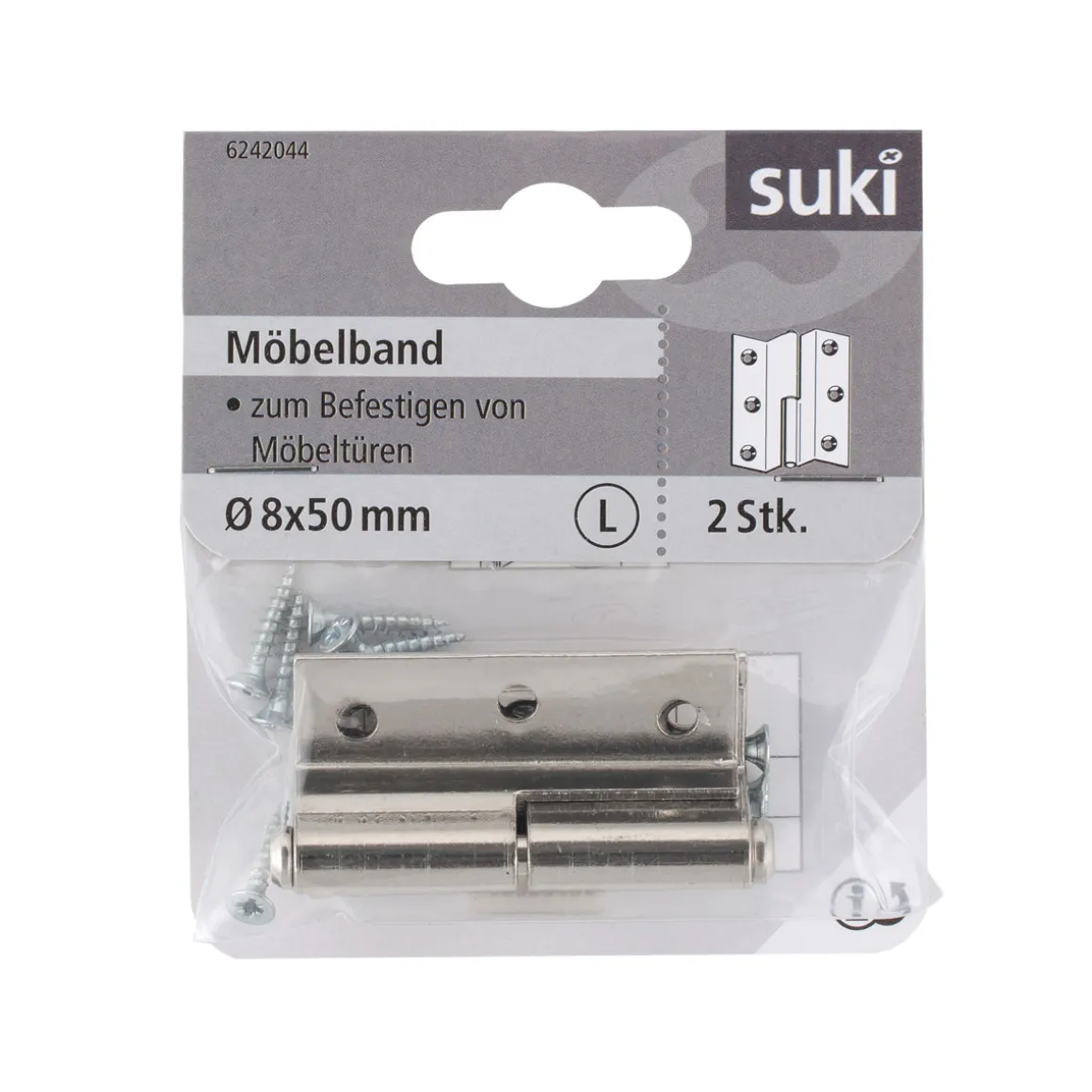 Das Suki Suki Möbelband ist die perfekte Wahl für alle, die auf der Suche nach einem hochwertigen und langlebigen Band für ihre Möbel sind. Mit einer Breite von 50 mm und einer linken Kröpfung bietet es eine optimale Stabilität und sorgt dafür, dass Ihre Möbel sicher an ihrem Platz bleiben.