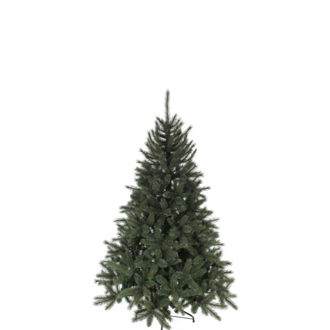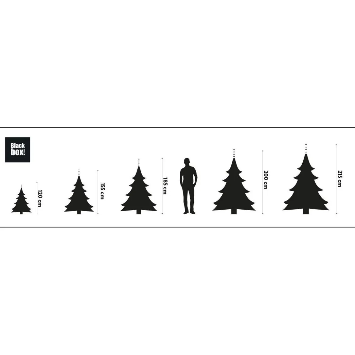 künstlicher hochwertiger Weihnachtsbaum Modell Toronto Delux grün mit 608 Zweigen – 155×114 cm (HxØ) Der Baum ist mit Raureif bedeckt und wurde für sein natürliches Aussehen aus harten und weichen Tannennadeln hergestellt. Die Zweige sind mit einer runden Spitze schön gestaltet und die Zweige haben eine natürlich aussehende braune Maserung. Die stabilen Zweige können problemlos mit Christbaumschmuck undLichterketten geschmückt werden.Der Baum besteht aus Zweigen mit harten buschigen Nadeln und weichen flachen Nadeln, wodurch der Baum viel natürlicher aussieht.Der Baum steht stabil auf einem Metallständer mit 4 Armen für eine gute Balance. Black Box Bäume werden aus hochwertigem PVC mit feuerhemmenden Eigenschaften hergestellt.