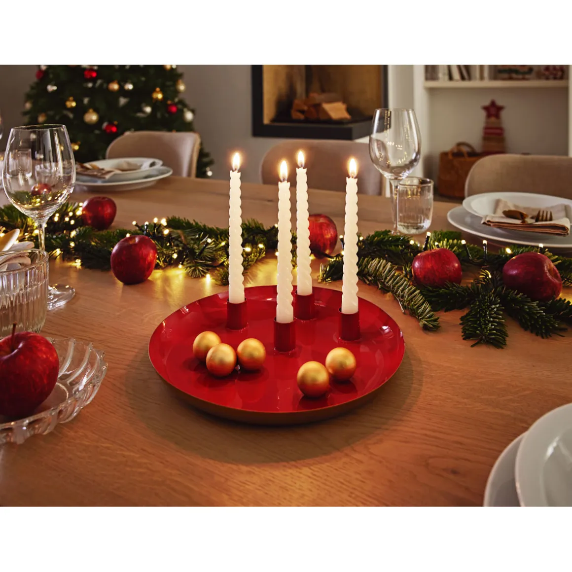 Teller mit 4 Kerzenhaltern Metall 26 x 3 x 26 cm rot – Ihr festlicher Hingucker
