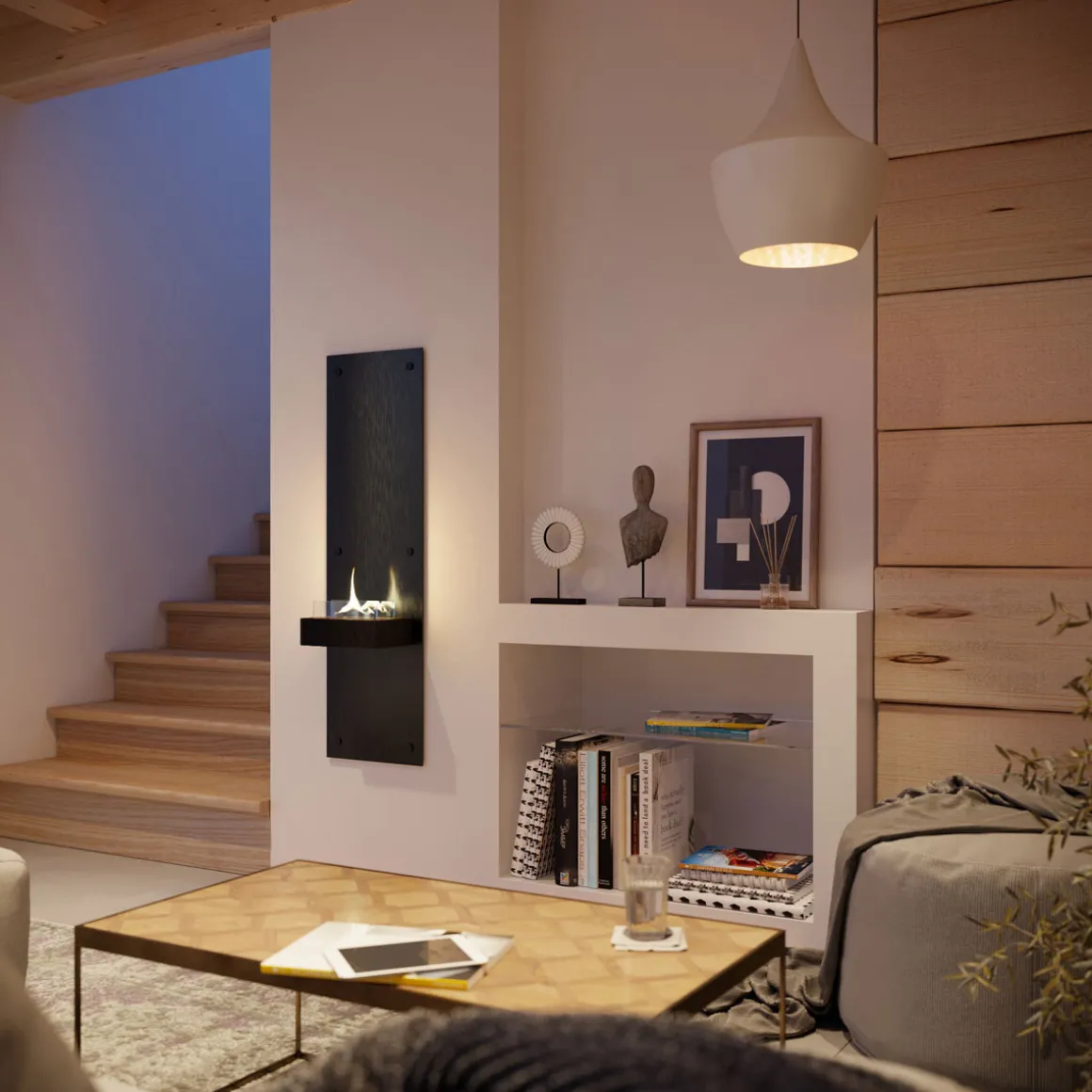 - Sicherheitsgeprüfter Wandkamin inklusive Lieferung eines hochwertigen Kamins der Serie Rock zur sofortigen Nutzung im Innenraum