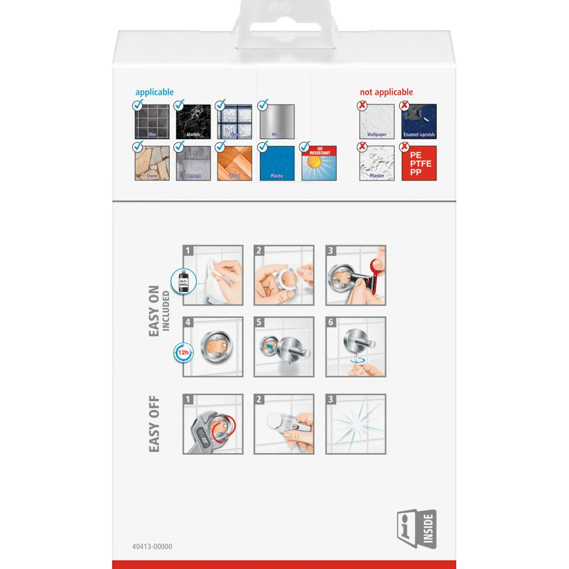 - Hält auf Fliesen, Metall, Naturstein, Marmor, Glas, Holz und vielen Kunststoffen