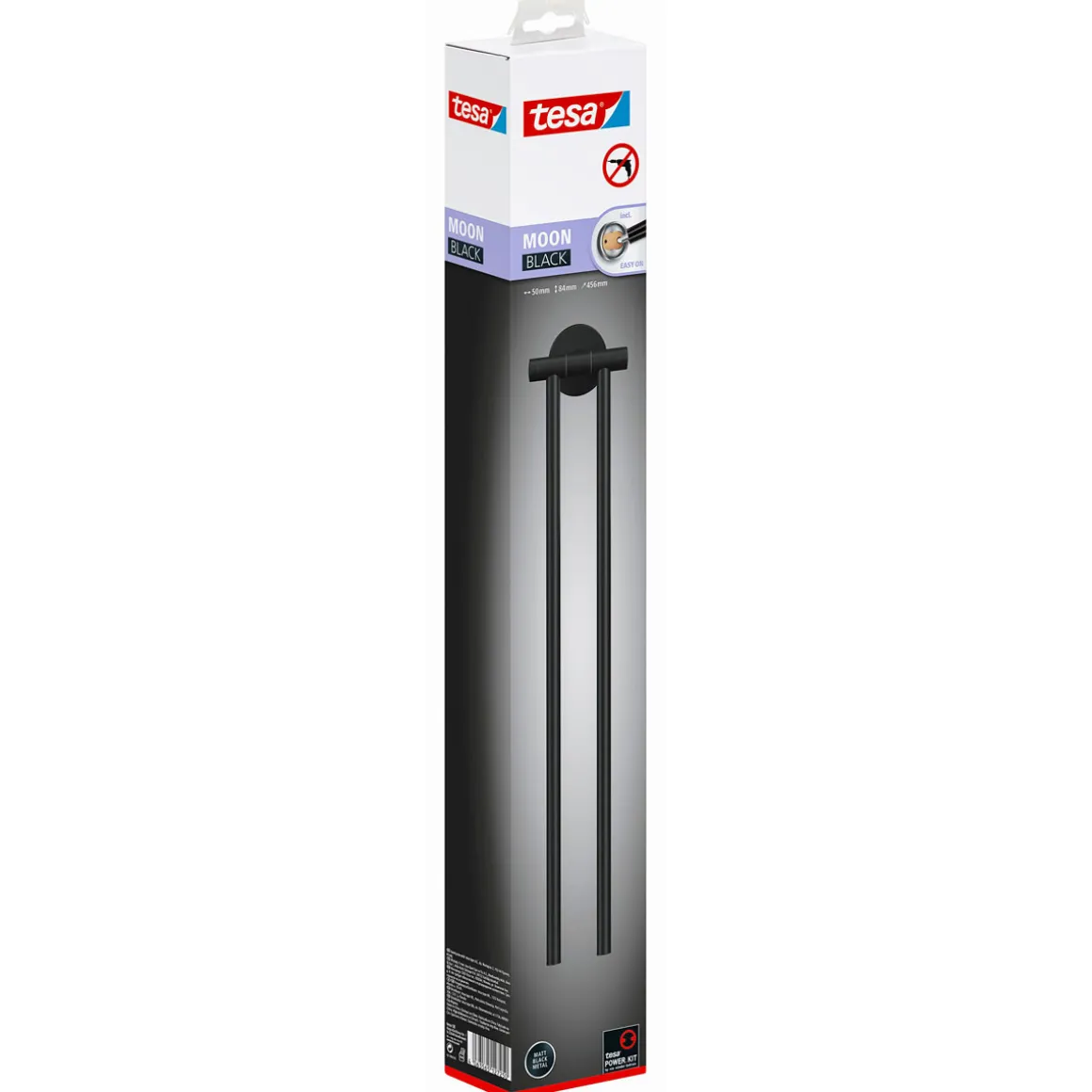 Der Tesa Handtuchhalter Moon in mattschwarz ist die perfekte Lösung für alle, die auf eine einfache und saubere Montage ohne Bohren setzen. Mit einer Größe von 45x5x8 cm bietet der Halter ausreichend Platz für zwei Handtücher. Die schwenkbare Funktion ermöglicht ein bequemes Aufhängen und Abnehmen der Handtücher.