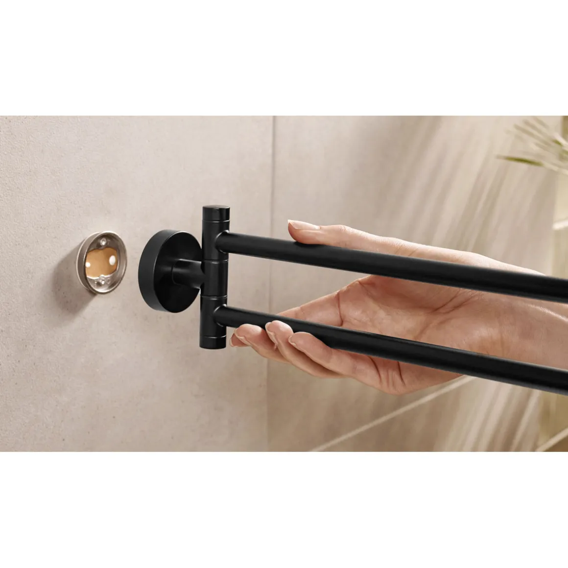 Mit dem Tesa Handtuchhalter Moon in mattschwarz erhalten Sie einen hochwertigen und stabilen Halter, der durch seine einfache Montage ohne Bohren überzeugt. Dank seiner schwenkbaren Funktion können Sie Ihre Handtücher bequem aufhängen und abnehmen. Der Halter eignet sich besonders gut für den Einsatz im Feuchtraum und bietet ausreichend Platz für zwei Handtücher.