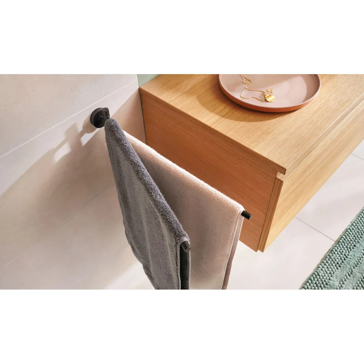 Tesa Handtuchhalter Moon mattschwarz – Einfache Montage ohne Bohren