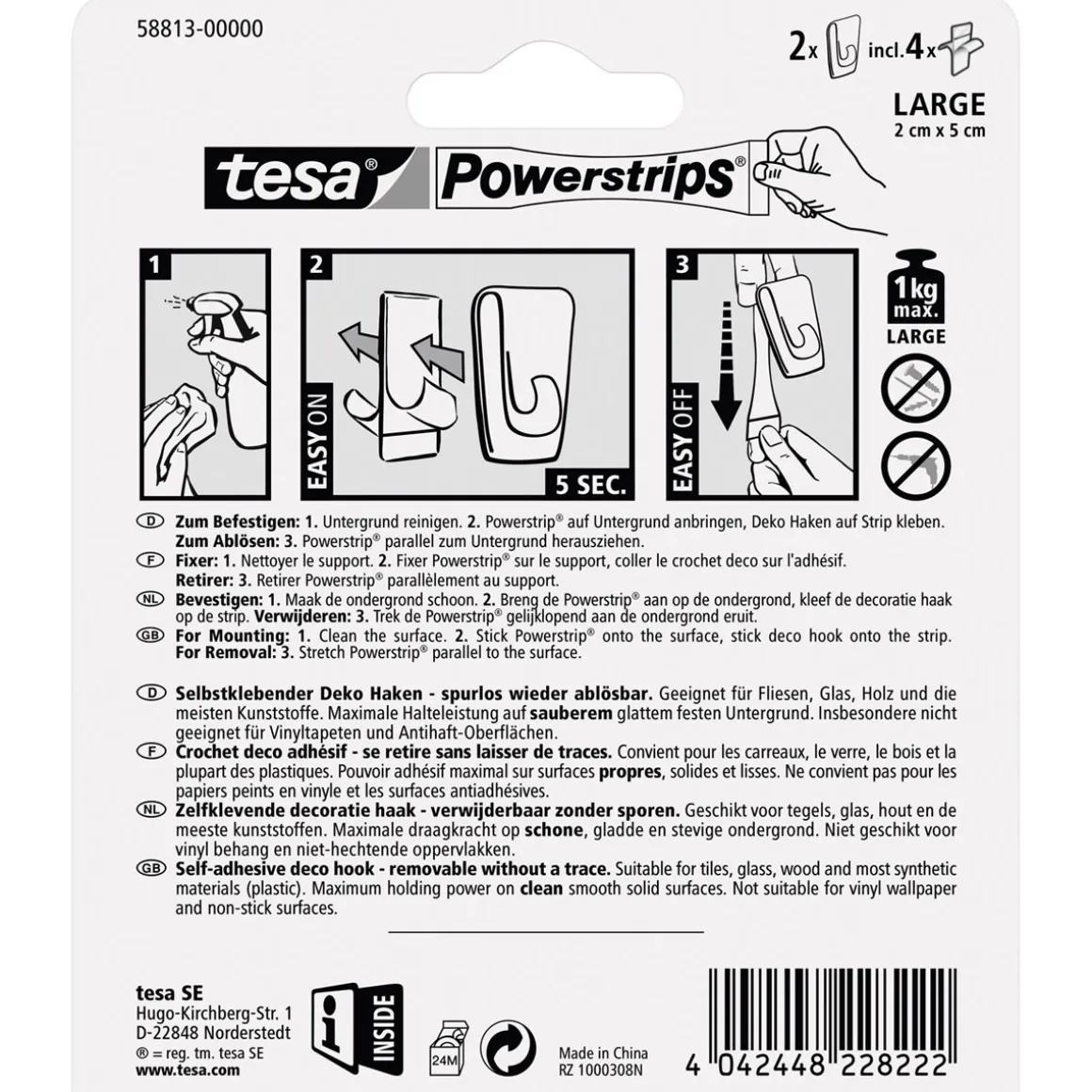 Der Tesa Powerstrips Klebehaken ist ideal für alleKunden geeignet, die Wert auf eine einfache und flexible Befestigung von Dekorationsobjekten legen. Besonders praktisch ist die Möglichkeit der rückstandslosen Entfernung.