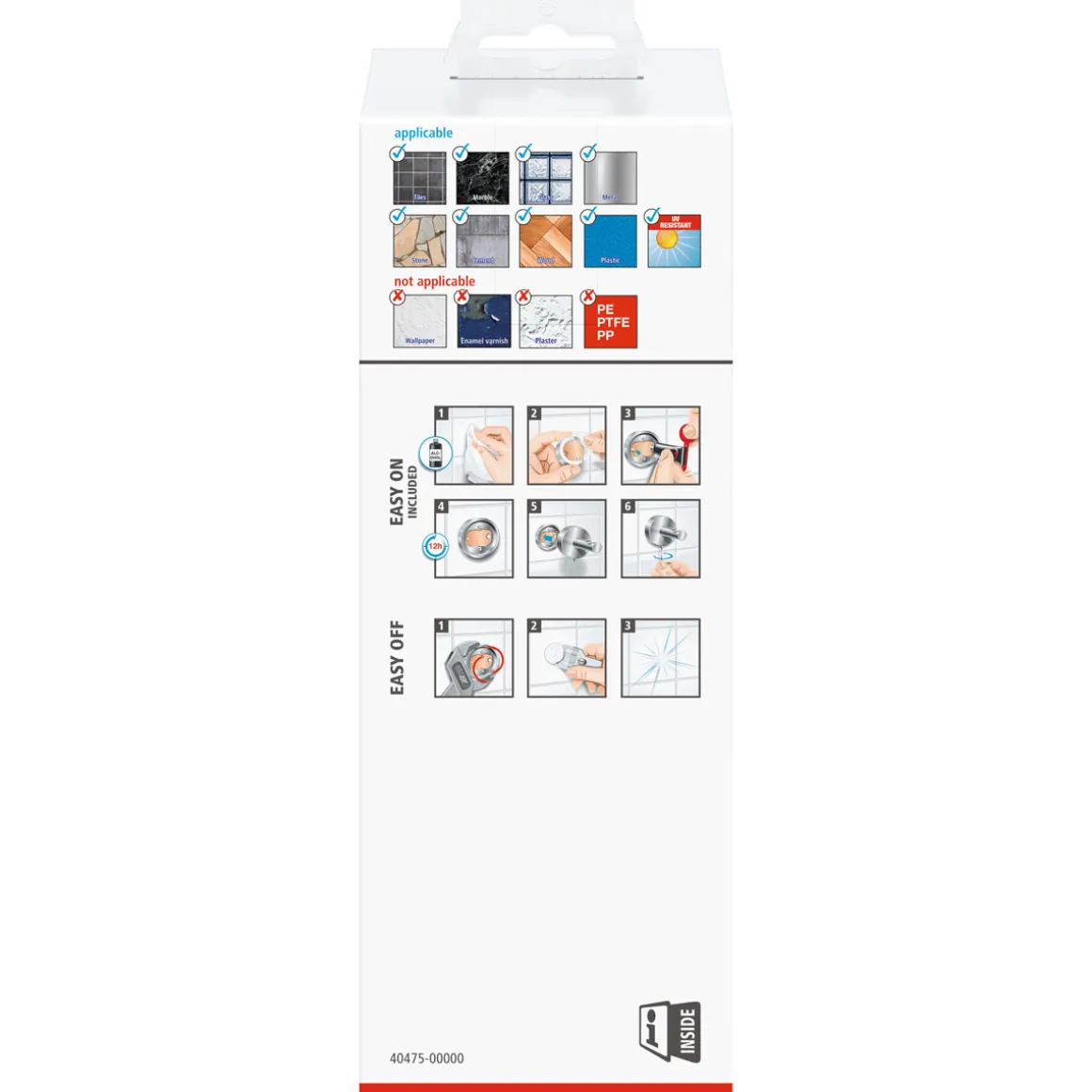 - Hält sicher auf Fliesen, Metall, Naturstein, Marmor, Glas, Holz sowie vielen Kunststoffen