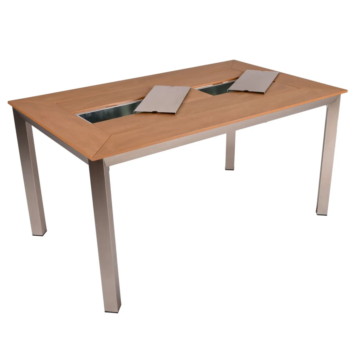 Sie lieben es, Ihre Zeit draußen zu verbringen? Dann ist der Tisch Florence genau das Richtige für Sie! Dieser Gartentisch vereint Funktionalität mit Stil. Seine robuste Bauweise aus Aluminium macht ihn besonders langlebig, während die UV-beständige Polywood-Tischplatte dafür sorgt, dass er auch nach vielen Sonnenstunden seine Schönheit behält. Dank seiner großzügigen Maße finden hier bis zu acht Personen bequem Platz – ideal also für Familienfeiern oder gesellige Abende mit Freunden. Besonders praktisch: Die integrierten Eisbehälter halten Ihre Getränke angenehm kühl, sodass Sie sich voll und ganz auf das Genießen konzentrieren können. Und das Beste? Der moderne Look in Champagner fügt sich harmonisch in jeden Outdoor-Bereich ein.