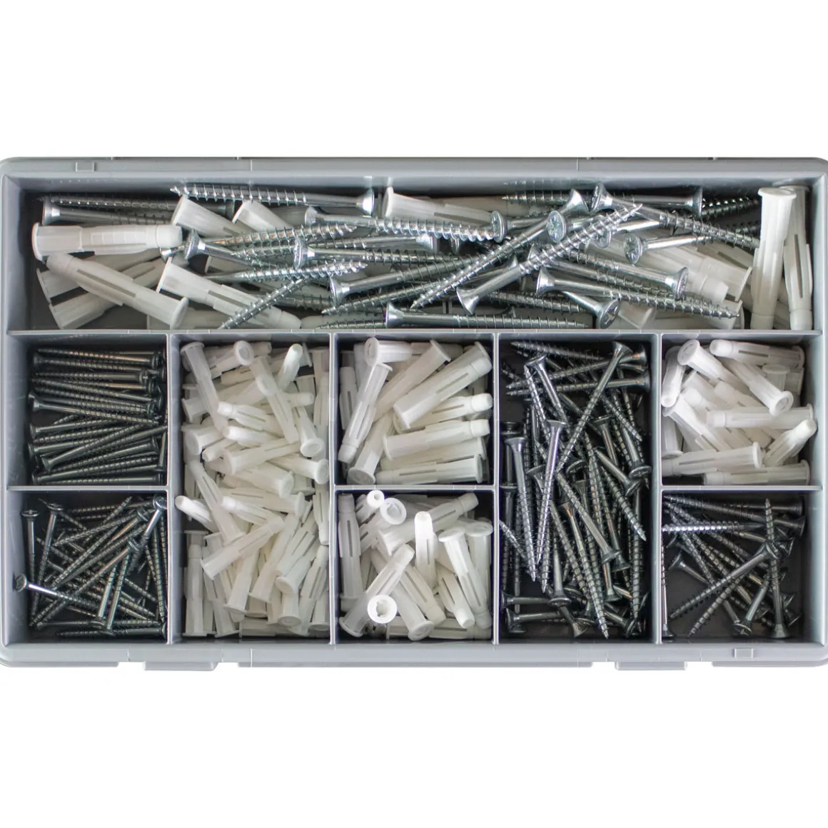 Die TOX Sortimentsbox Plug and Play bietet alles was man braucht um schnell und einfach Dinge zu befestigen. Mit insgesamt 320 Dübeln und Schrauben aus Polypropylen sind Sie für nahezu jede Anwendung gerüstet. Ob Beton oder Gipskartonplatten – diese Box hat alles was man braucht. Für jeden Heimwerker ein absolutes Muss!