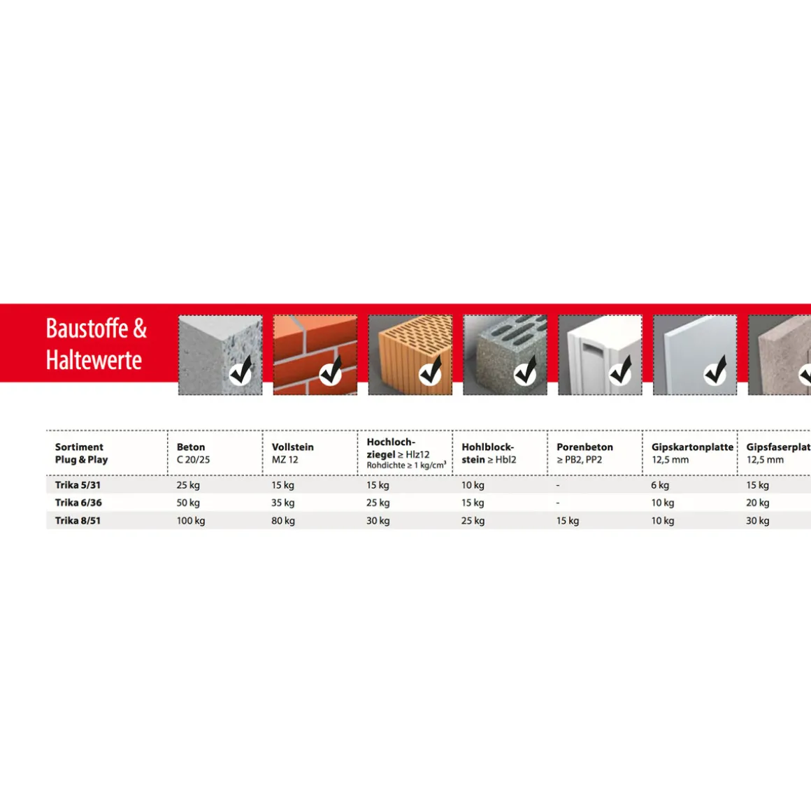 - Geeignet für: Mauerwerk, Beton, Vollstein, Hochlochziegel, Hohlblockstein, Porenbeton, Gipskartonplatte, Gipsfaserplatte