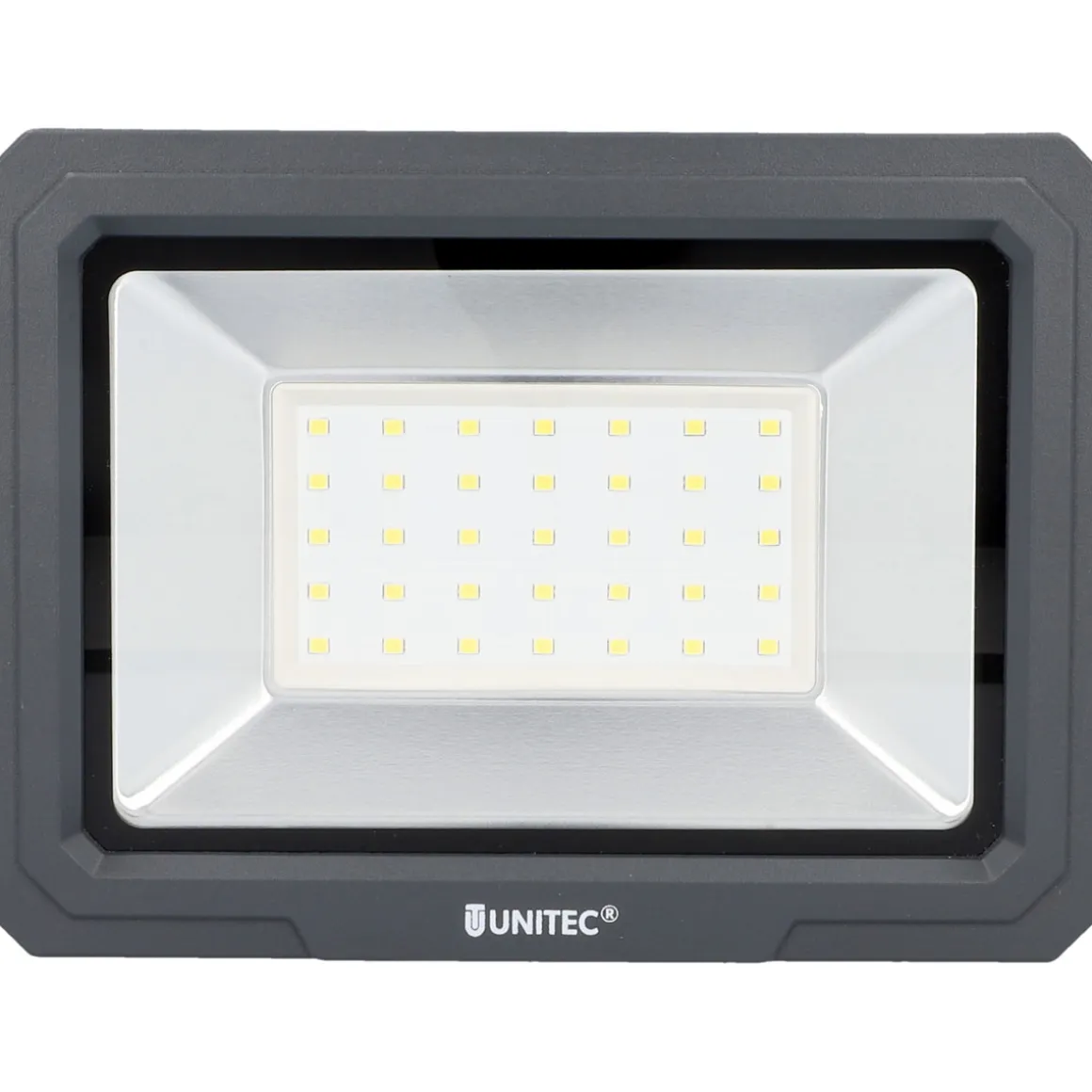 Setzen Sie Ihre Außenanlage ins rechte Licht mit dem Unitec LED Wandstrahler in Anthrazit. Mit einer Leistung von 50 Watt und einer Lichtleistung von 4000 Lumen sorgt er für eine helle Ausleuchtung. Das robuste Aluminium-Gestell und der Schutzgrad IP65 machen ihn wetterfest und langlebig.