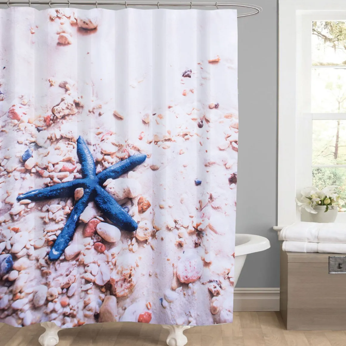 - Hochwertiger Textilduschvorhang mit maritimem Seestern-Design