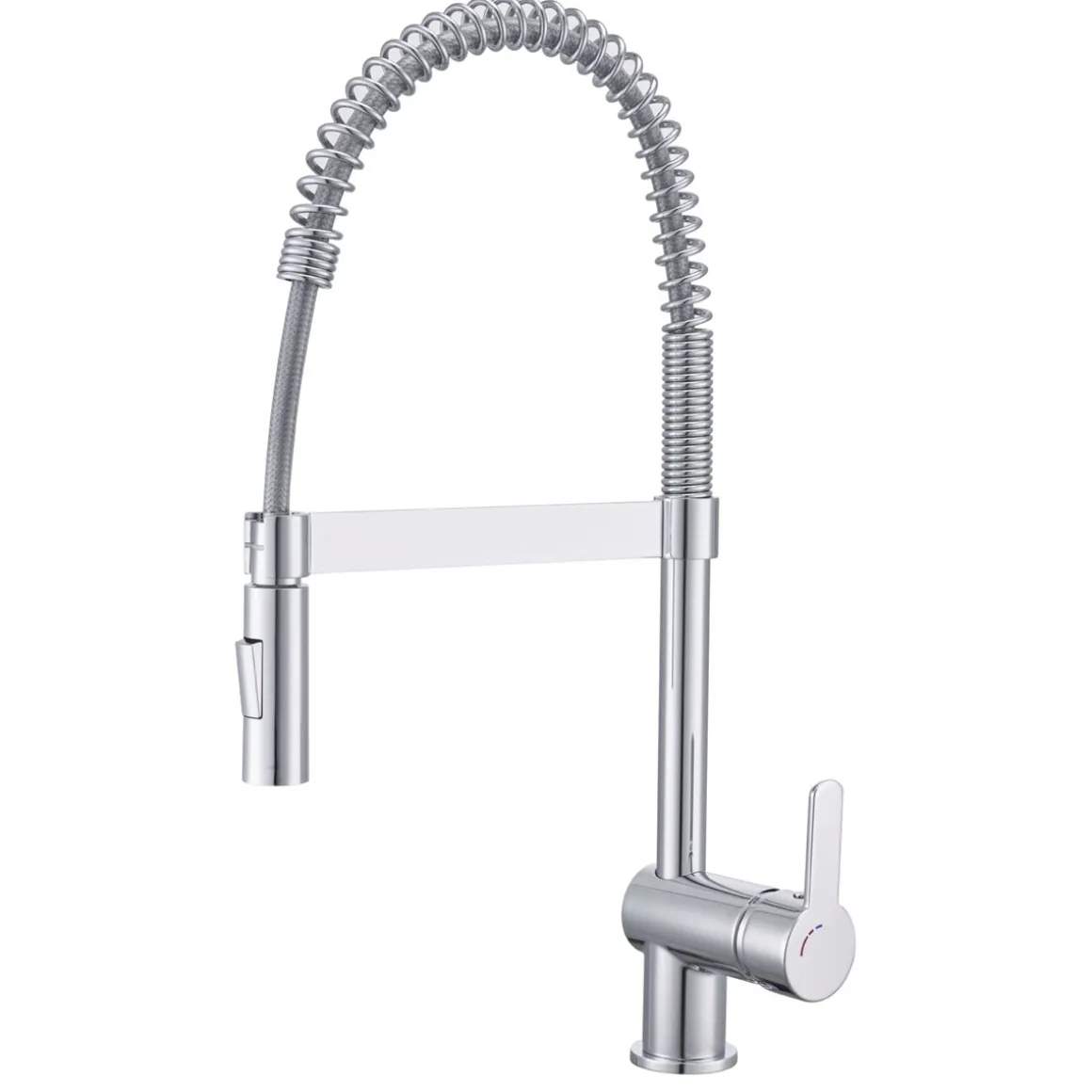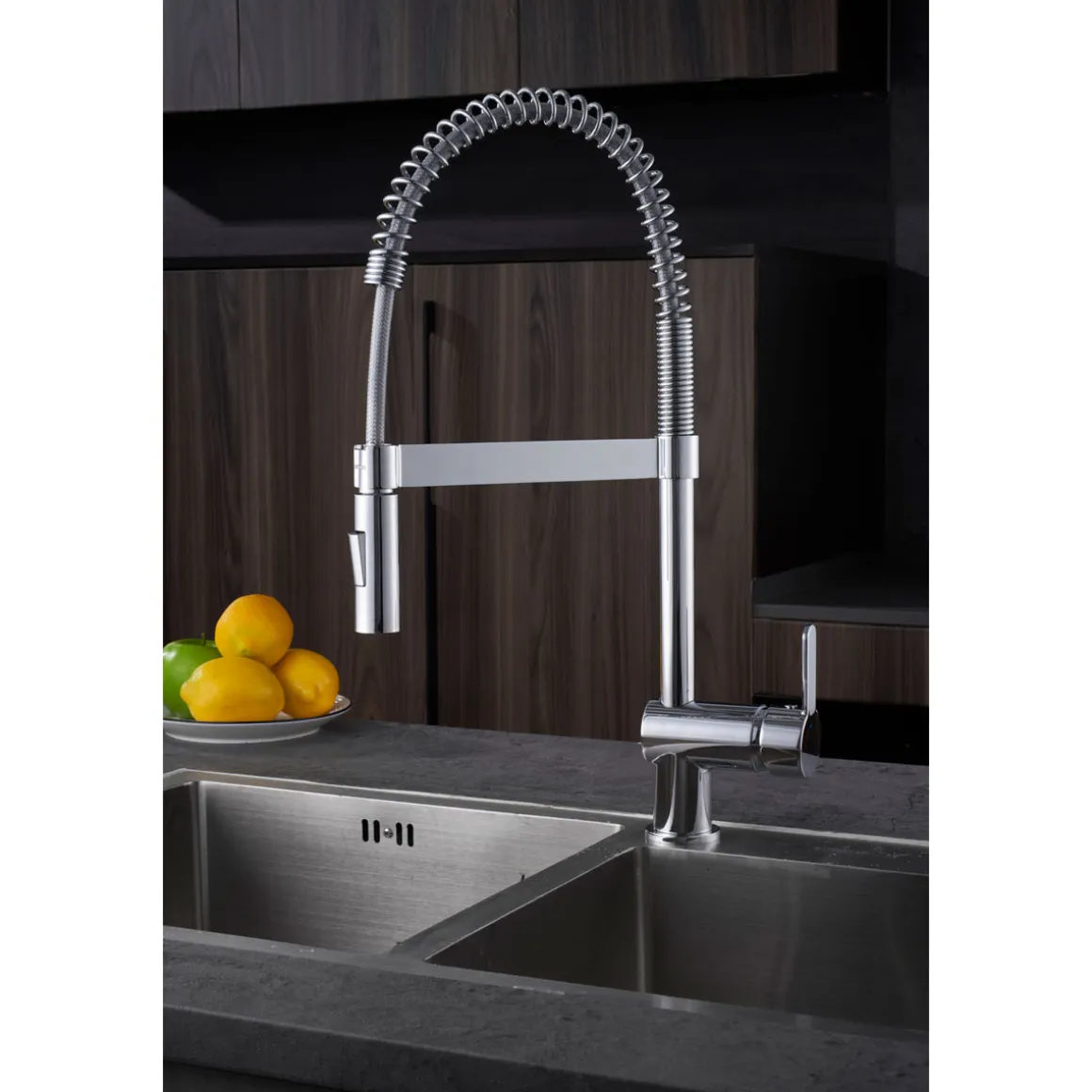 Spültischarmatur mit Spiralfeder in chrom glänzend.