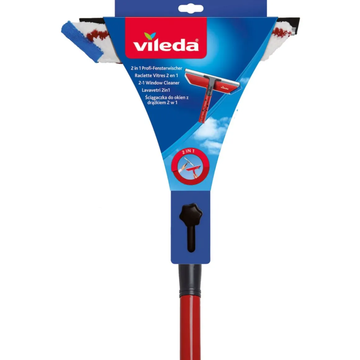 Mit dem Vileda Profi-Fensterwischer inkl. Stiel wird das Fensterputzen zum Kinderspiel – auch an schwer zugänglichen Stellen.