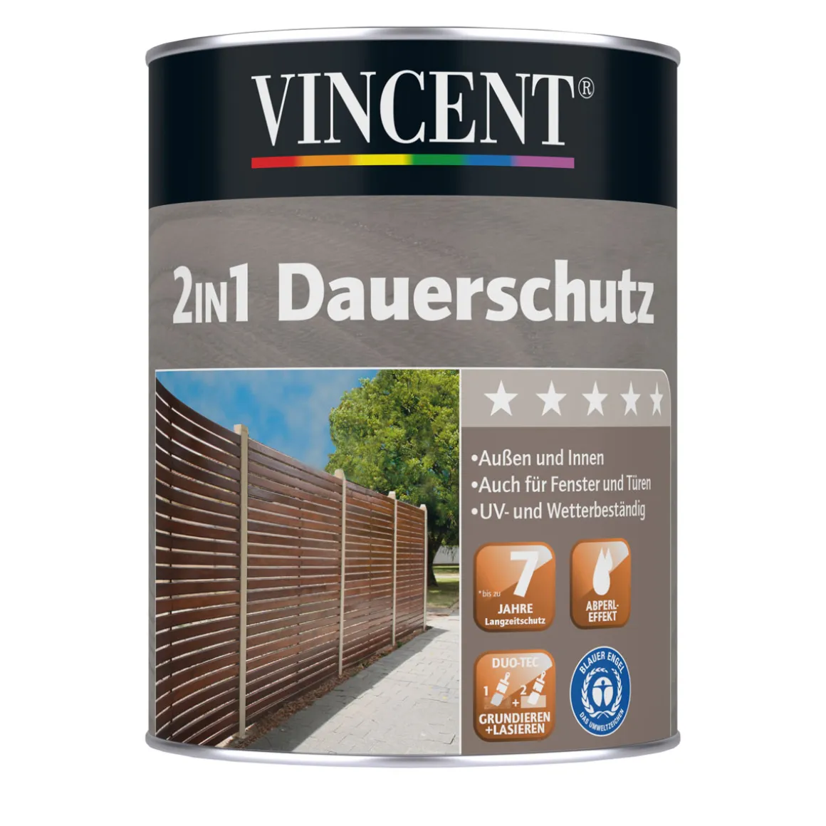 Der Vincent Vincent 2in1 Dauerschutz eignet sich ideal für alle Kunden, die hochwertige Holzbauteile wie Türen, Fenster oder Geländer besitzen. Mit diesem Produkt können Sie Ihr Holz optimal schützen und gleichzeitig eine seidenglänzende Optik erzielen.
