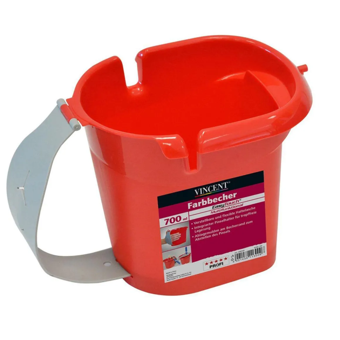 Mit dem Vincent Farbbecher easy Touch wird das Streichen zum Kinderspiel. Der Eimer aus Kunststoff bietet Platz für bis zu 750 ml Flüssigkeit und ist mit einem Pinselhalter ausgestattet. Das Material besteht aus Recyclingsmaterial und die Größe beträgt 700 ml bei einer Höhe von 15 cm. Mit der Lieferanten-Artikelnummer 91688_800 und den EAN-Codes 3524141946173 sowie 3524141950071 ist der Farbbecher leicht zu identifizieren.
